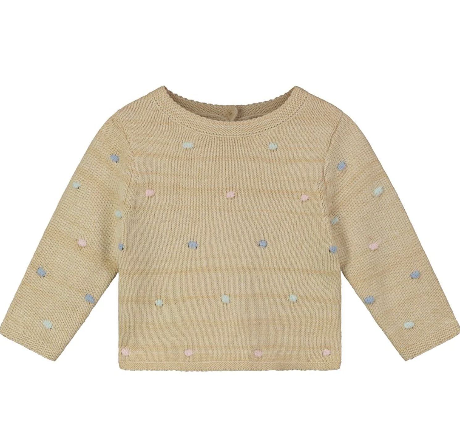 Gorgeous polka dot knit sweater with button down the back detail. Team up with our Ives pants for perfect snuggly warm winter outfit.