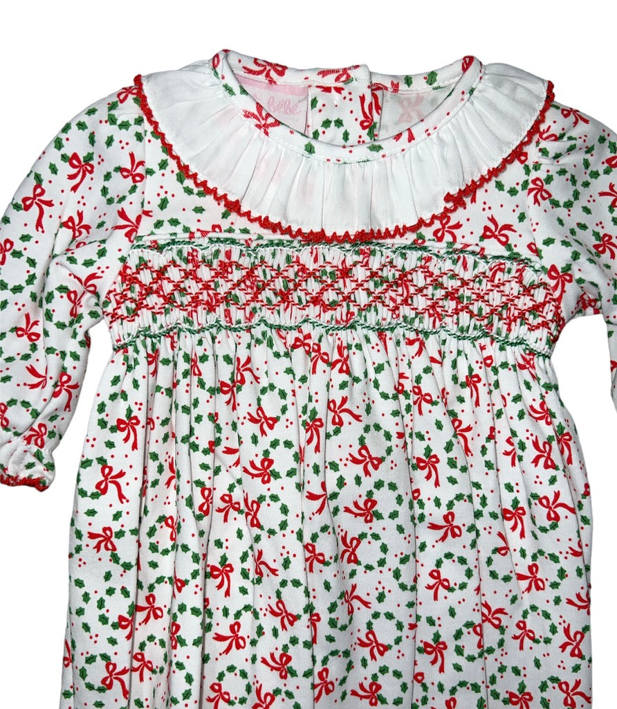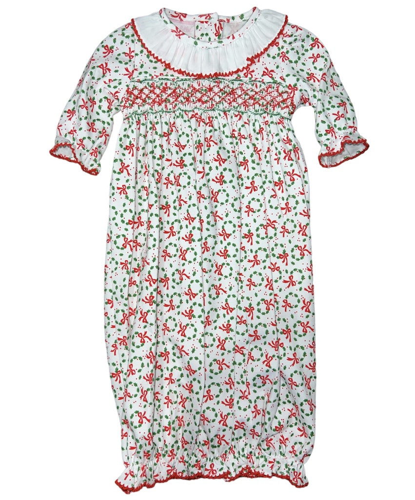 Petit Bebe Olivia Holiday Wreath Gown.