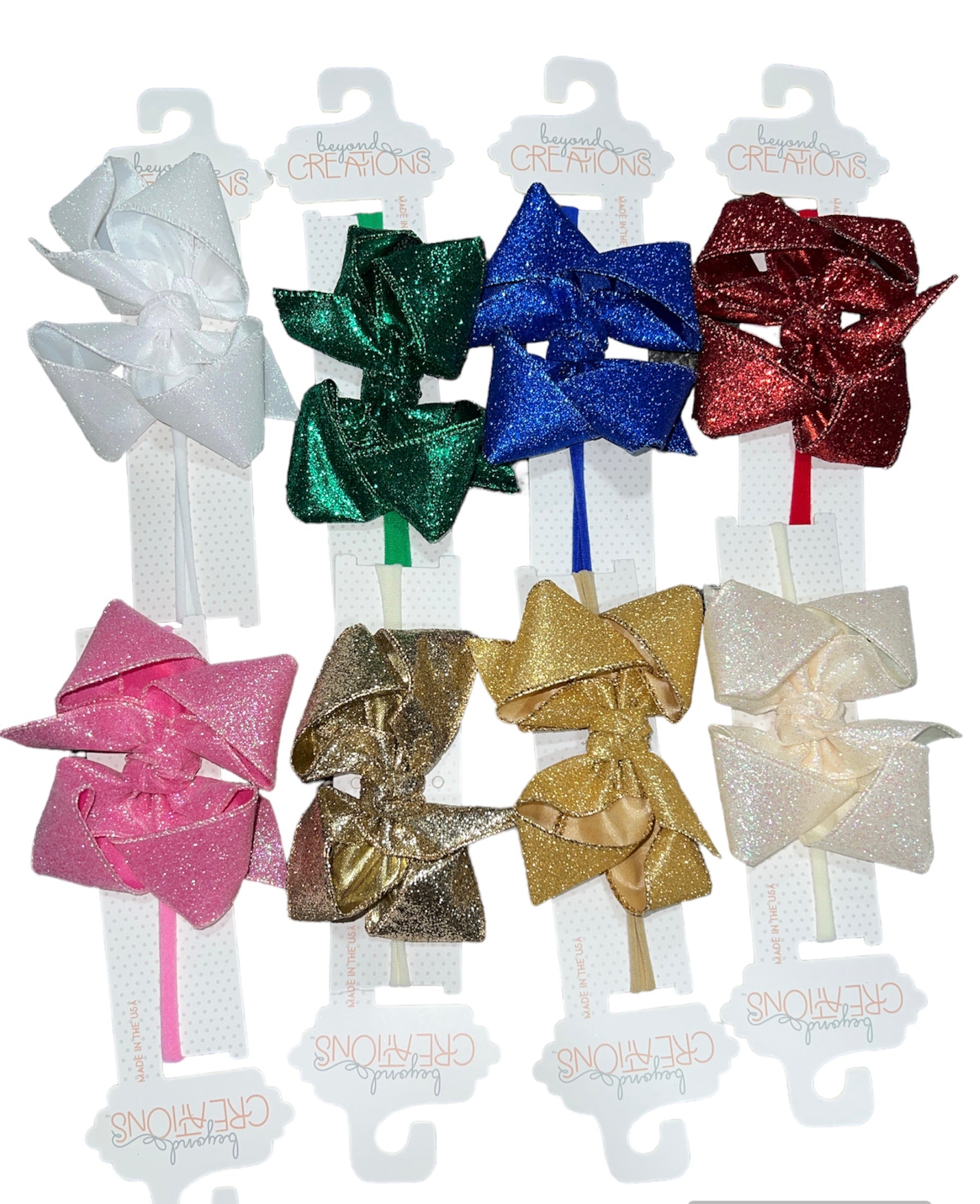 Pantyhose Headband w/ 4.5" Glittery Bow.