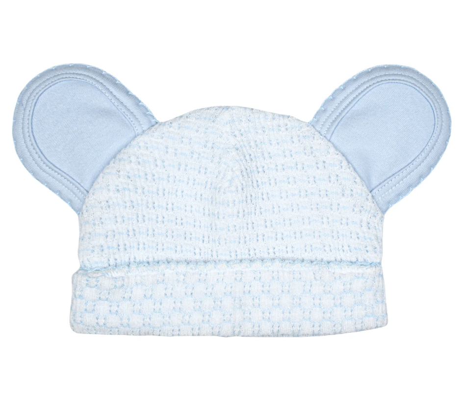 Paty Knit Bear Beanie Pima Binding Pinstripe Blue w/Blue Trim