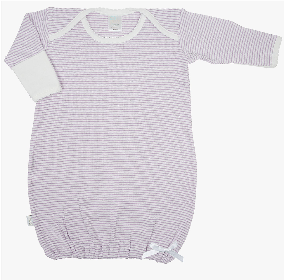 Paty LS Rib Knit Lap Shoulder Gown Lavender/White.