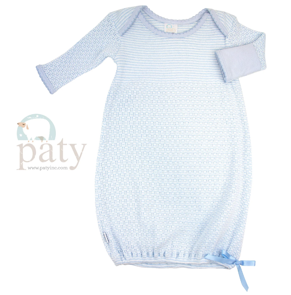 Paty Solid Color Knit LS Lap Shoulder Gown w/ Cotton Trim Blue.