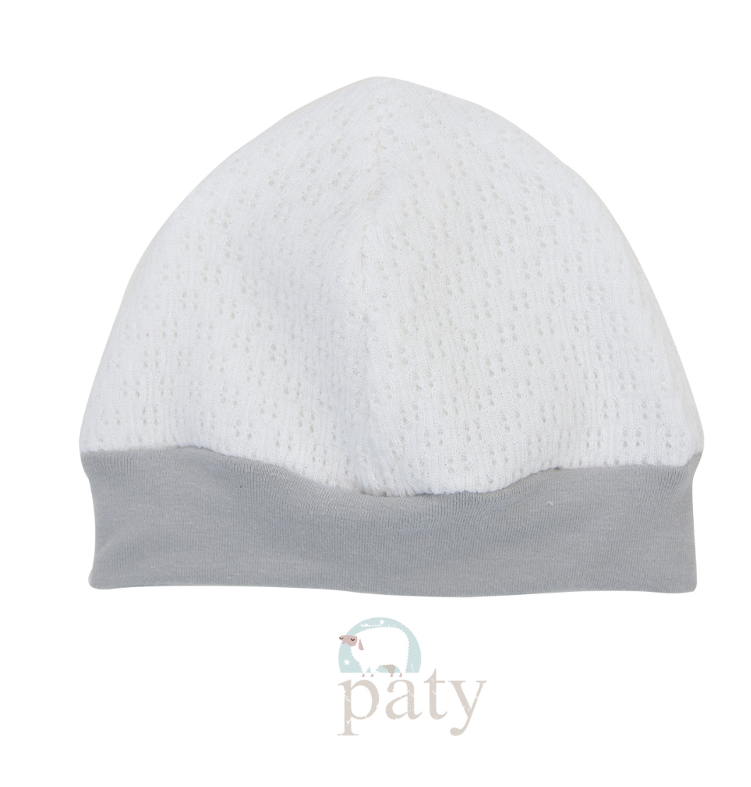 Paty White Beanie Cap w/Grey Cotton Trim.