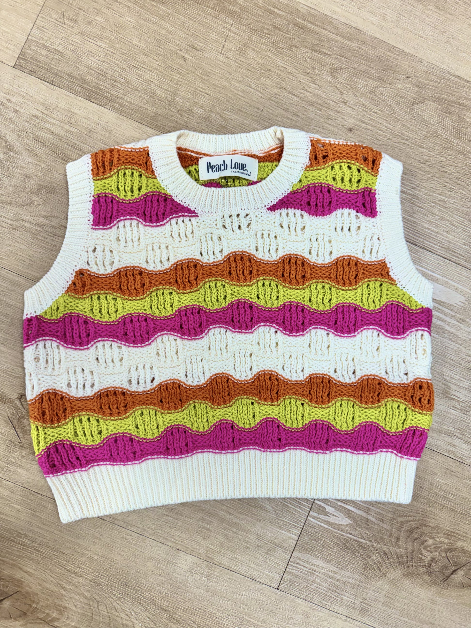 Peach Love Ivory/Fushia Wavy Crochet Sweater Vest.
