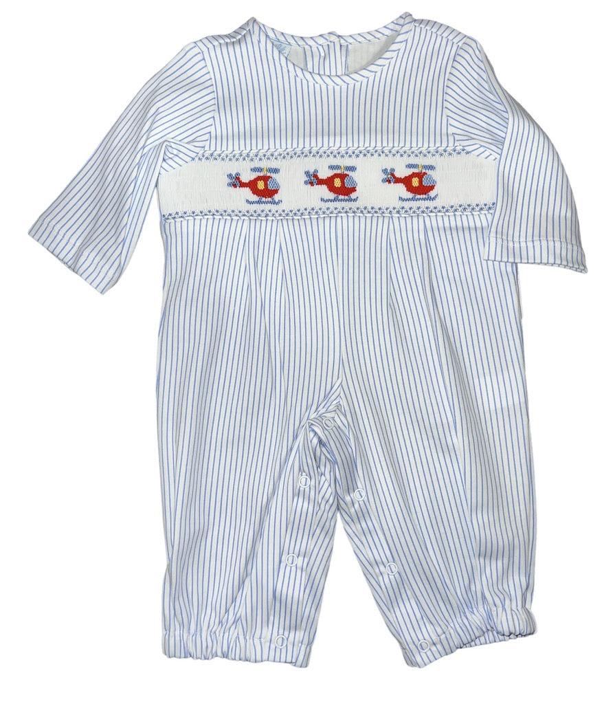 Petit Bebe Blue Stripe Smock Airplane Romper.