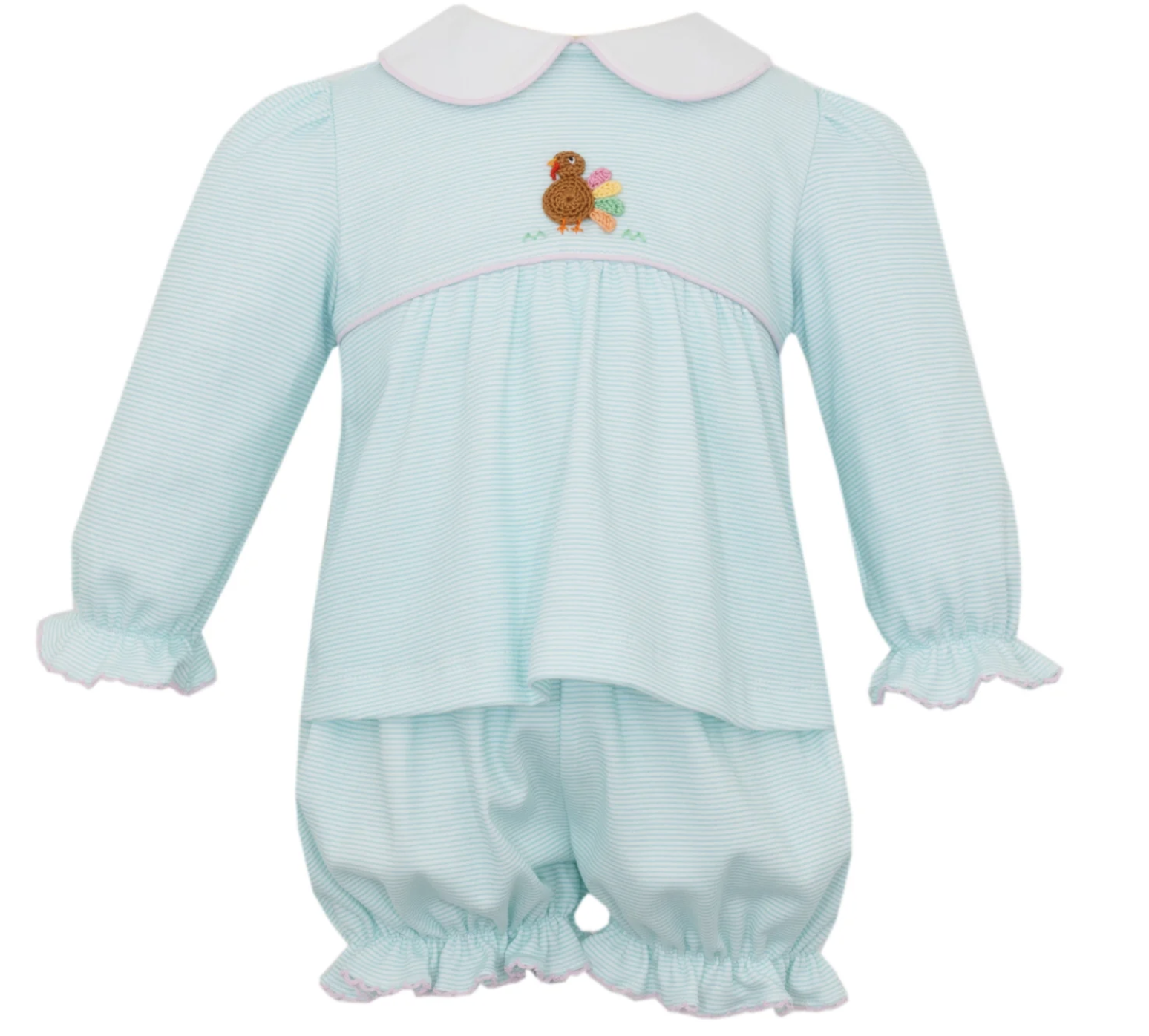 Petit Bebe Turkey Girl Aqua Pin Stripe Bloomer Set
