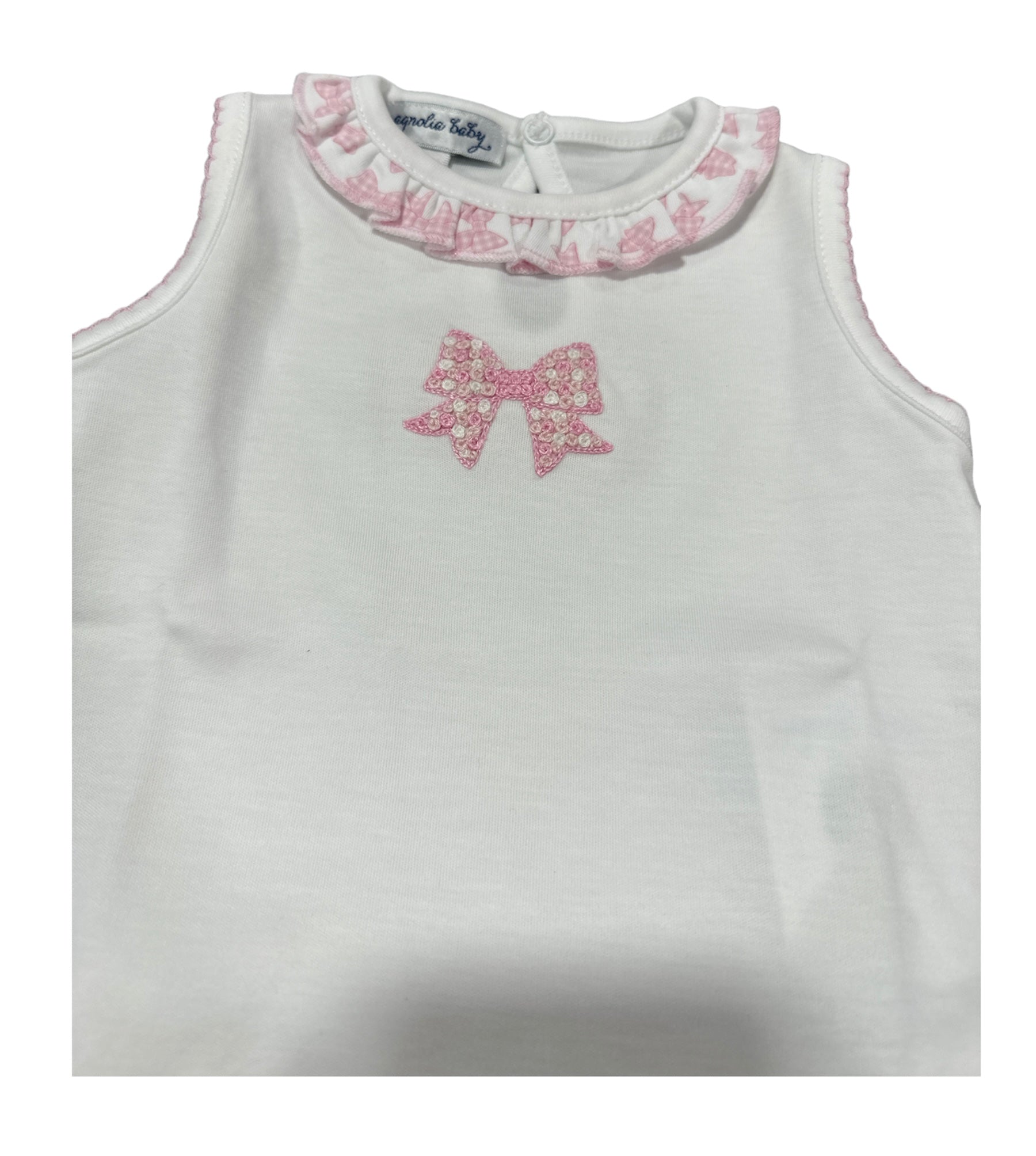 Pink Gingham Bows Emb Ruffle Short Set.