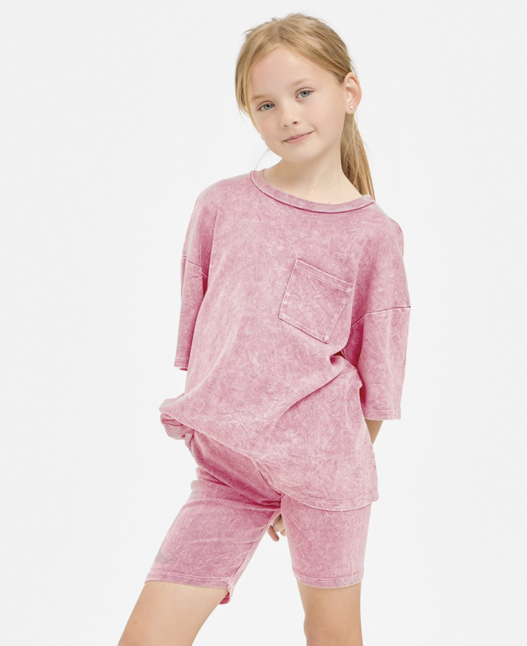 Good Girl Pink Mineral Washed Top and Biker Shorts Set.