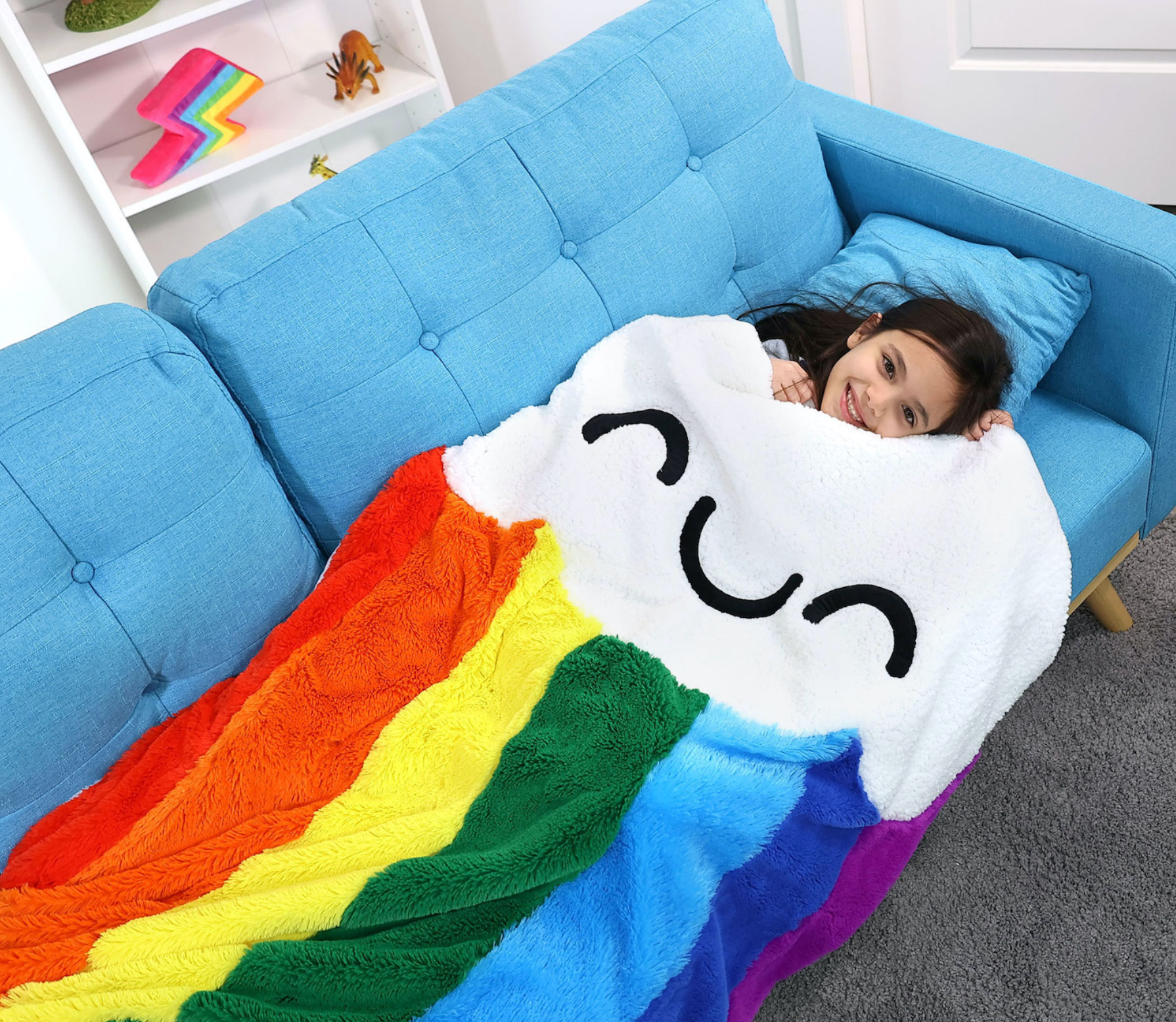Whether your child is reading, streaming shows on the couch, or settling down for a power nap, these deliciously furry designs invite them to do it with a smile. At 52 inches long and 42 inches wide, each can cover most children from toe to chin or serve as the best roof ever in their masterpiece of a living room fort.