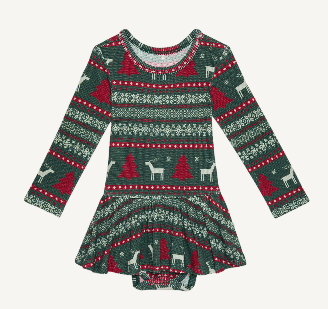 Posh Peanut Holiday Fair Isle LS Basic Twirl Skirt Bodysuit
