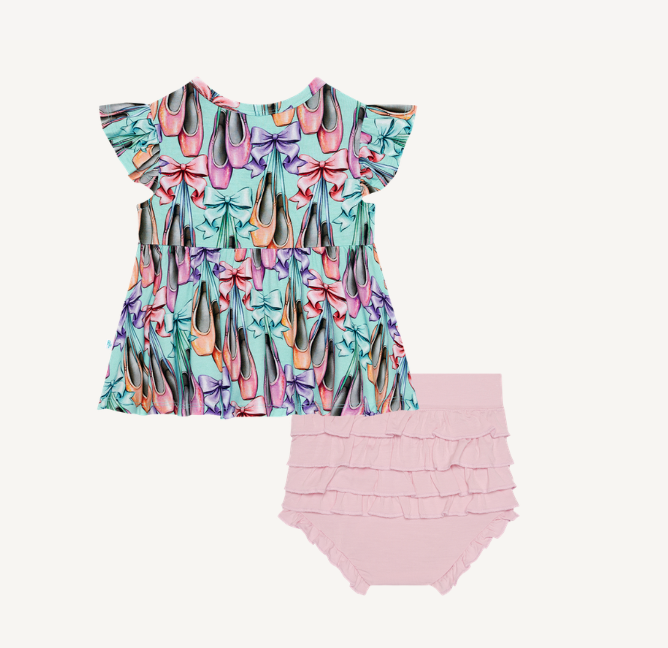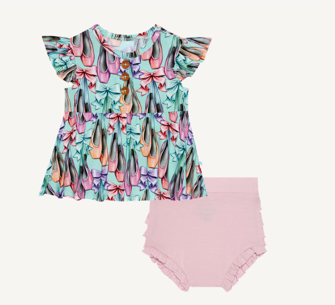 Posh Peanut Irina Ruffled Cap Sleeve Henley Peplum Top & Bloomer Set.