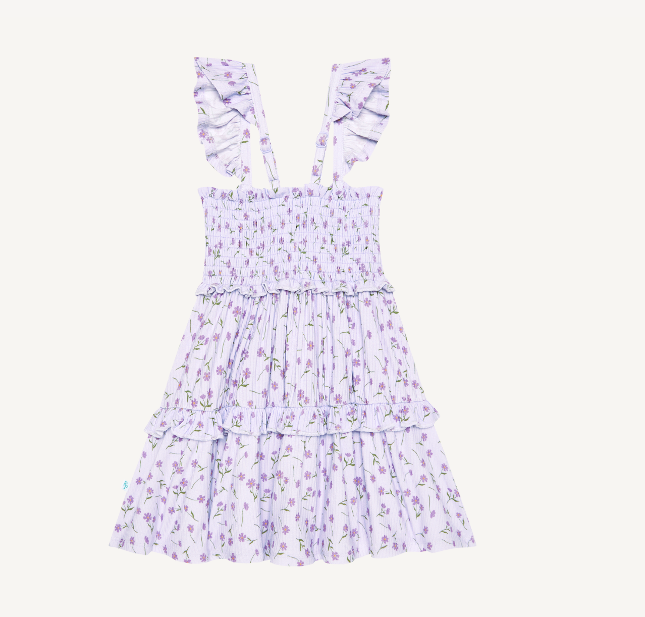 Posh Peanut Jeanette Smocked Flutter Sleeve Babydoll Dress.