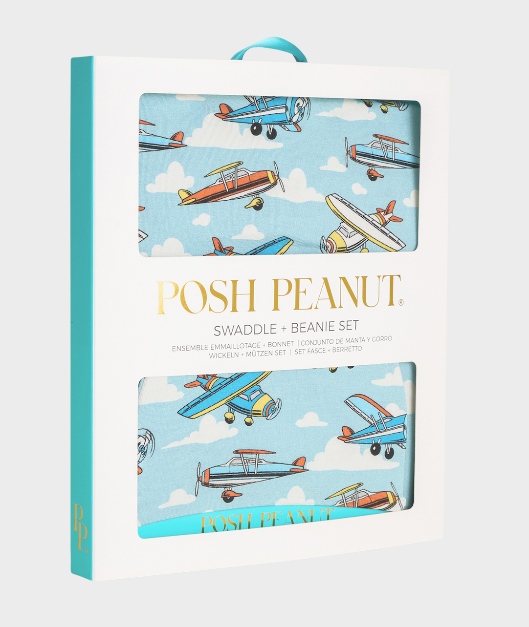 Posh Peanut Posh Planes Swaddle & Beanie Set