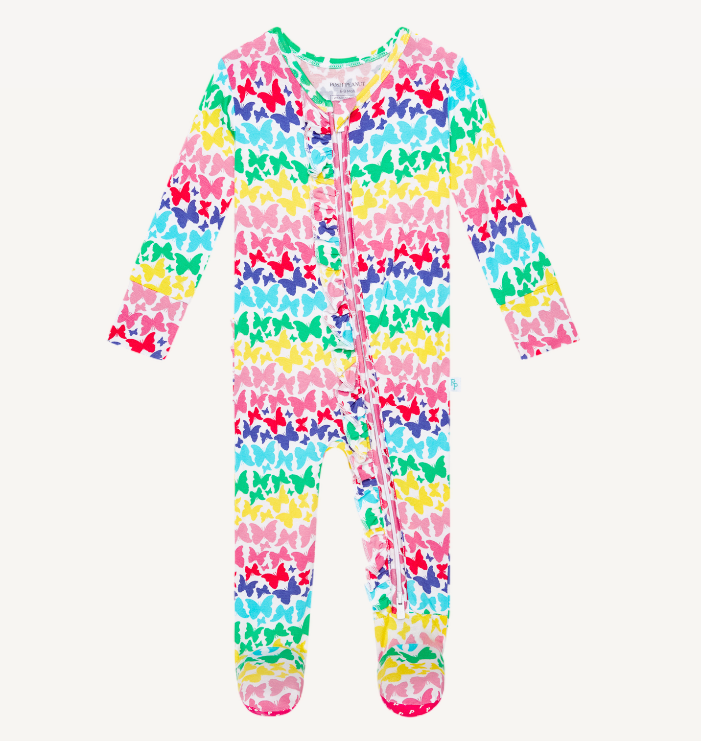 Posh Peanut Rainbow Butterfly Ruffled Footie Zippered One Piece.