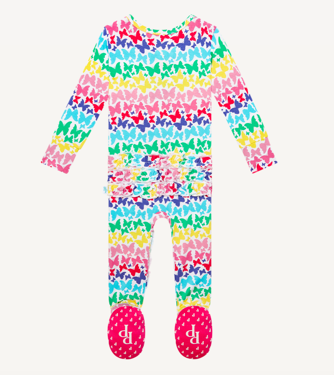 Posh Peanut Rainbow Butterfly Ruffled Footie Zippered One Piece