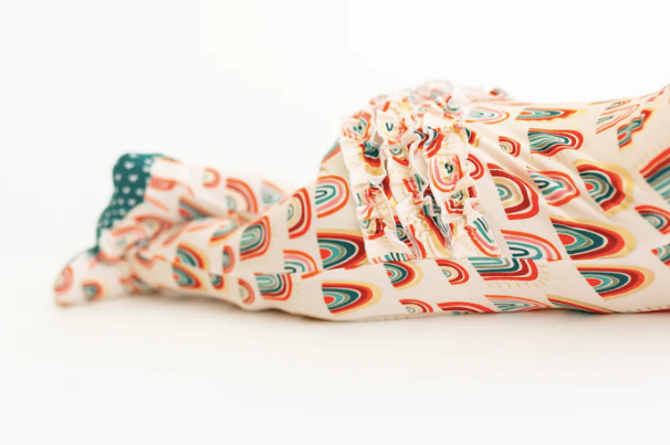 - Sizes 9 months+ the ruffles are slightly smaller from our previous productions with an added extra ruffle on the back. Depicted in the image is a size 9-12M. All smaller sizes remain the same with 3 rows of ruffles on the back.