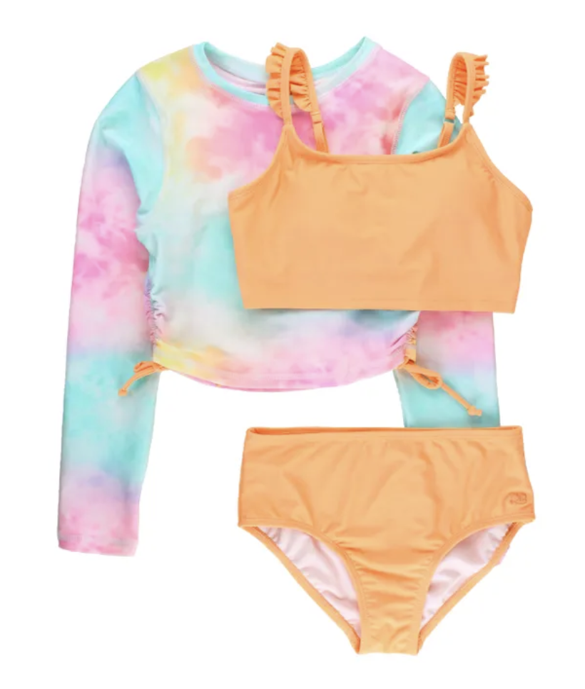 RB Rainbow Tie Dye Cropped LS RashGuard 3pc Set