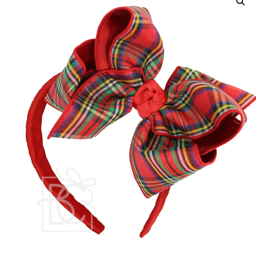 Red Headband w/ 5.5" Plaid Bow.