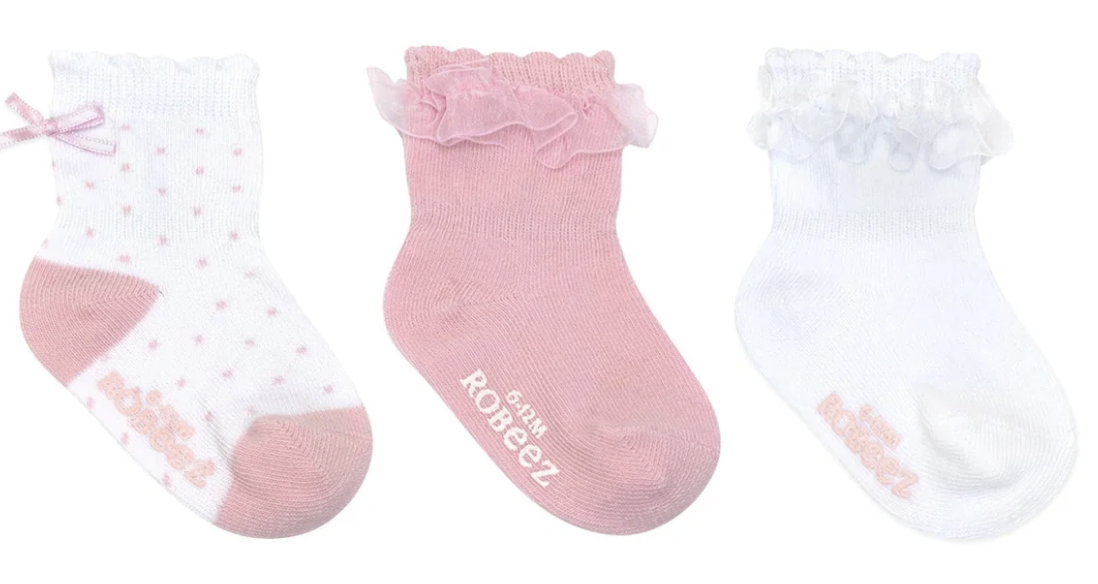 Robeez Frilly 3 Pk Lt Pink Non Skid Infant Socks. Kick off Proof. Stays on