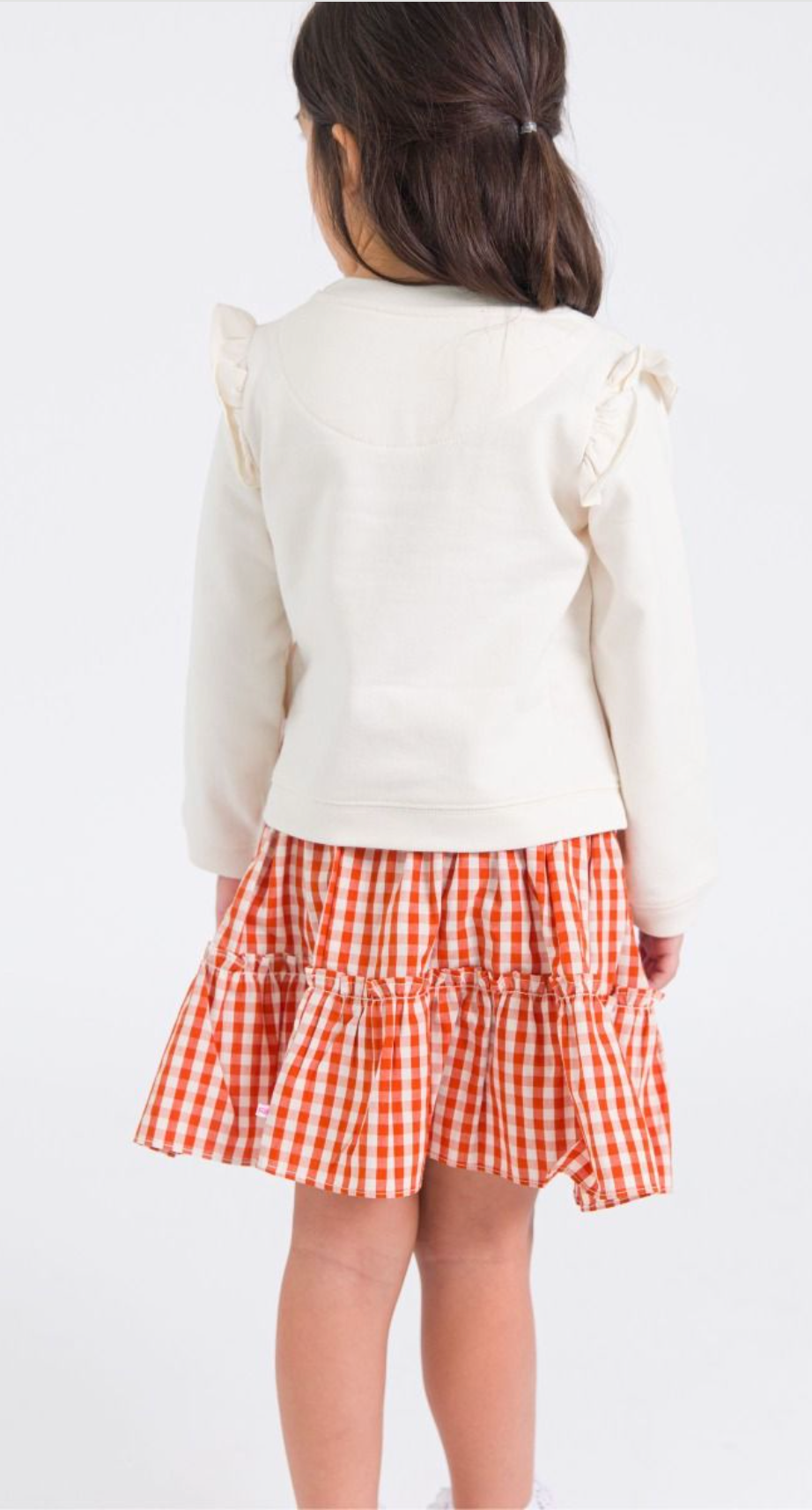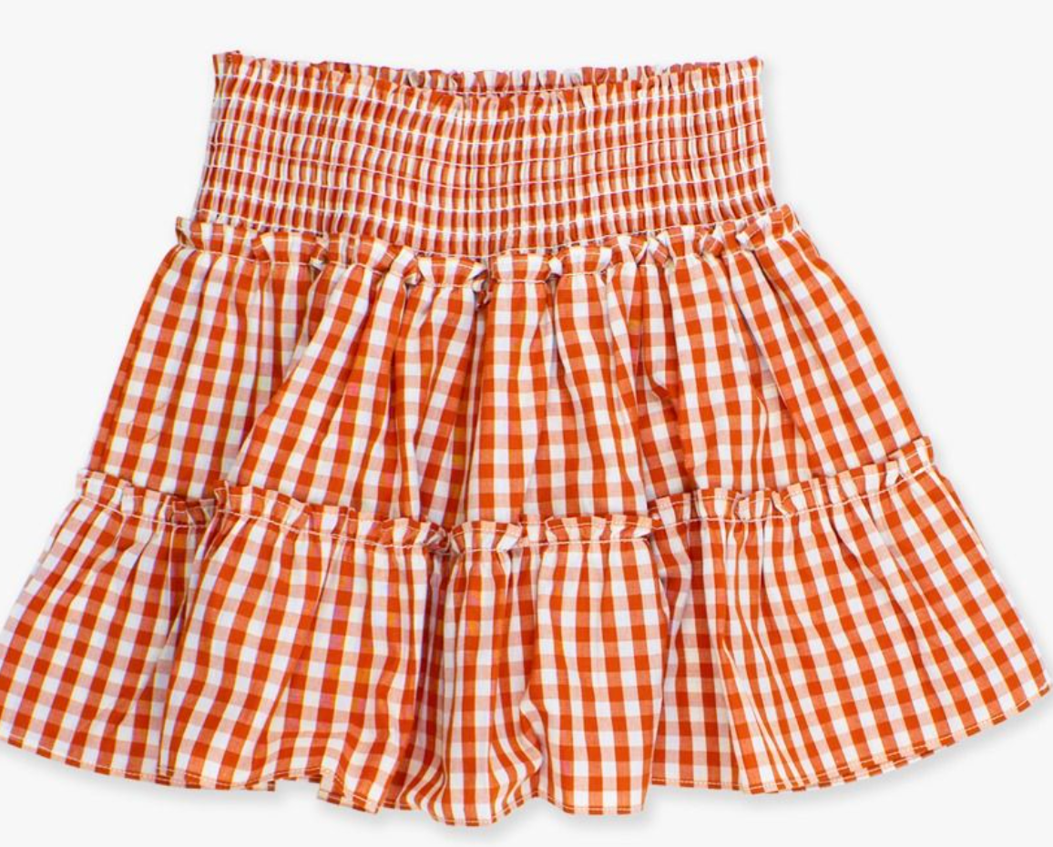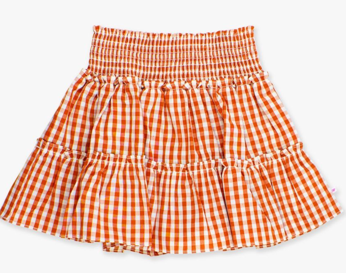 RuffleButts Classic Rust Gingham Smocked Twirl Skirt