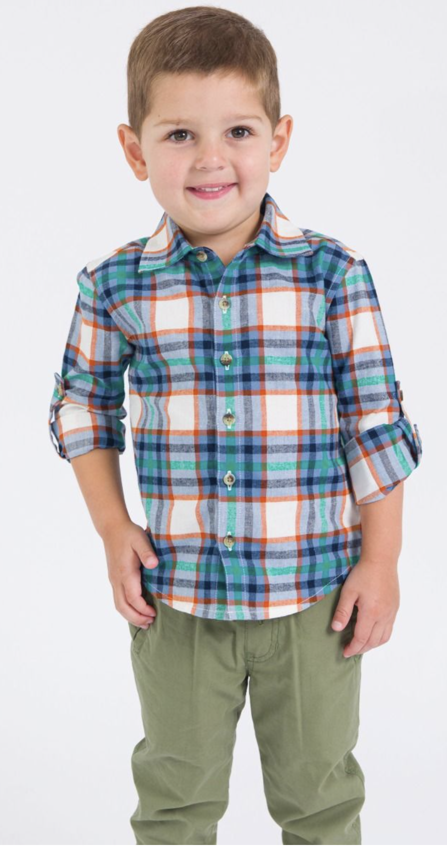 RuffleButts Peyton Plaid L/S Button Down Shirt