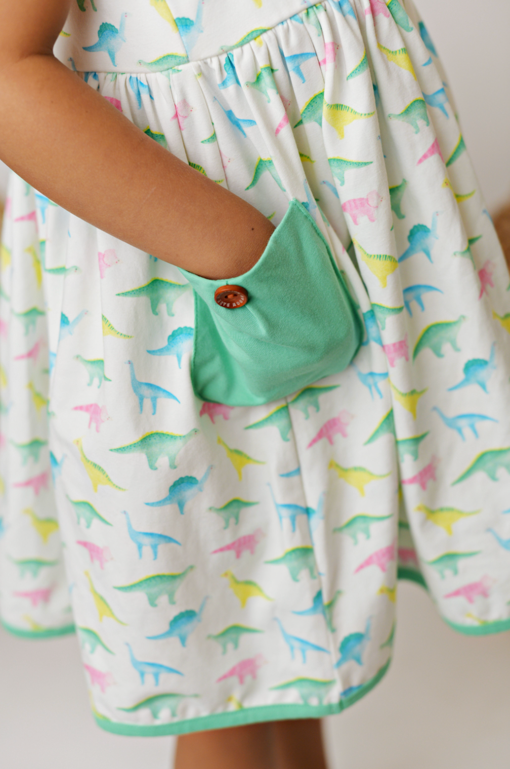 SB Watercolor Dino Peony Bow Pocket Dress.
