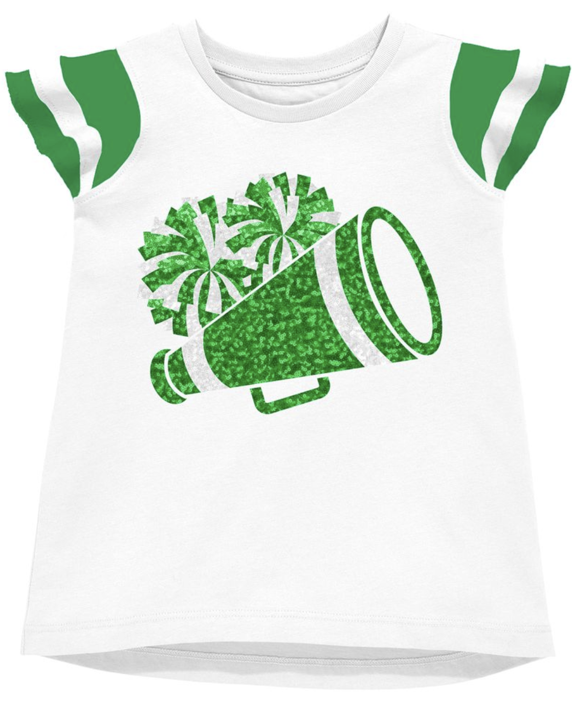 Shimmer Ruffle Sleeve Sequin Cheer in Green Game Day.