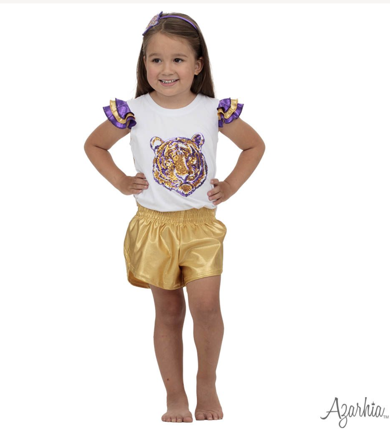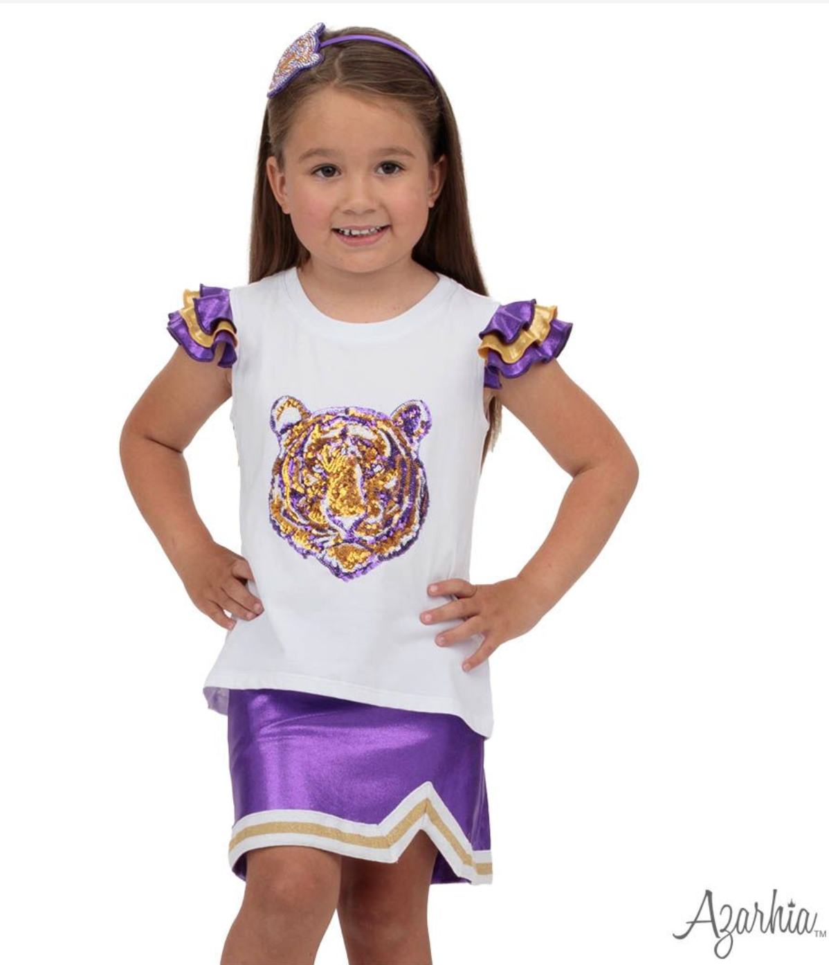 Shimmer Ruffle Sleeve Sequin Cheer in Tiger Game Day