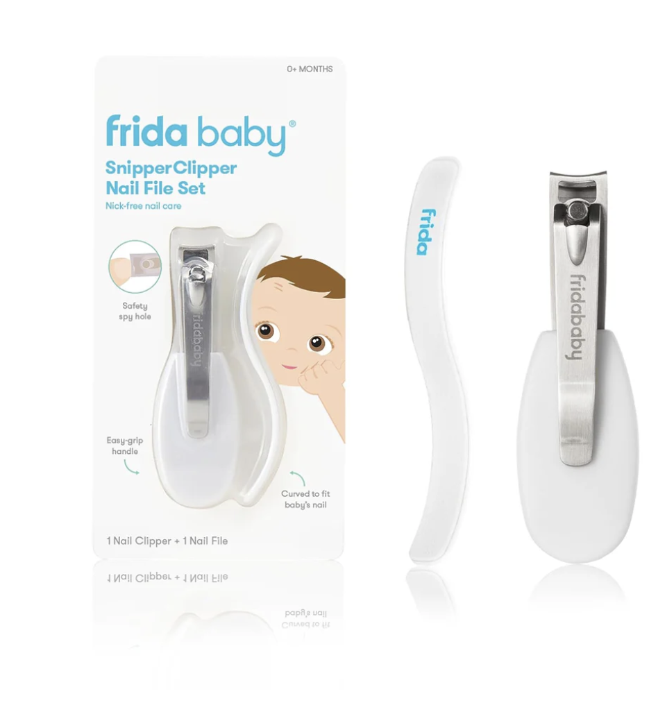 Tackle all of your trimming troubles without nicking baby's sensitive skin with the NailFrida SnipperClipper Set. See what you're snipping through the safety spyhole and nail that mani/ pedi every time. NailFrida's specially curved blades mimic the shape of a baby scissor and are uniquely designed for smooth and silent snipping. Smooth sharp corners with the curved S-file that's shaped just for baby- a must for newborn care.