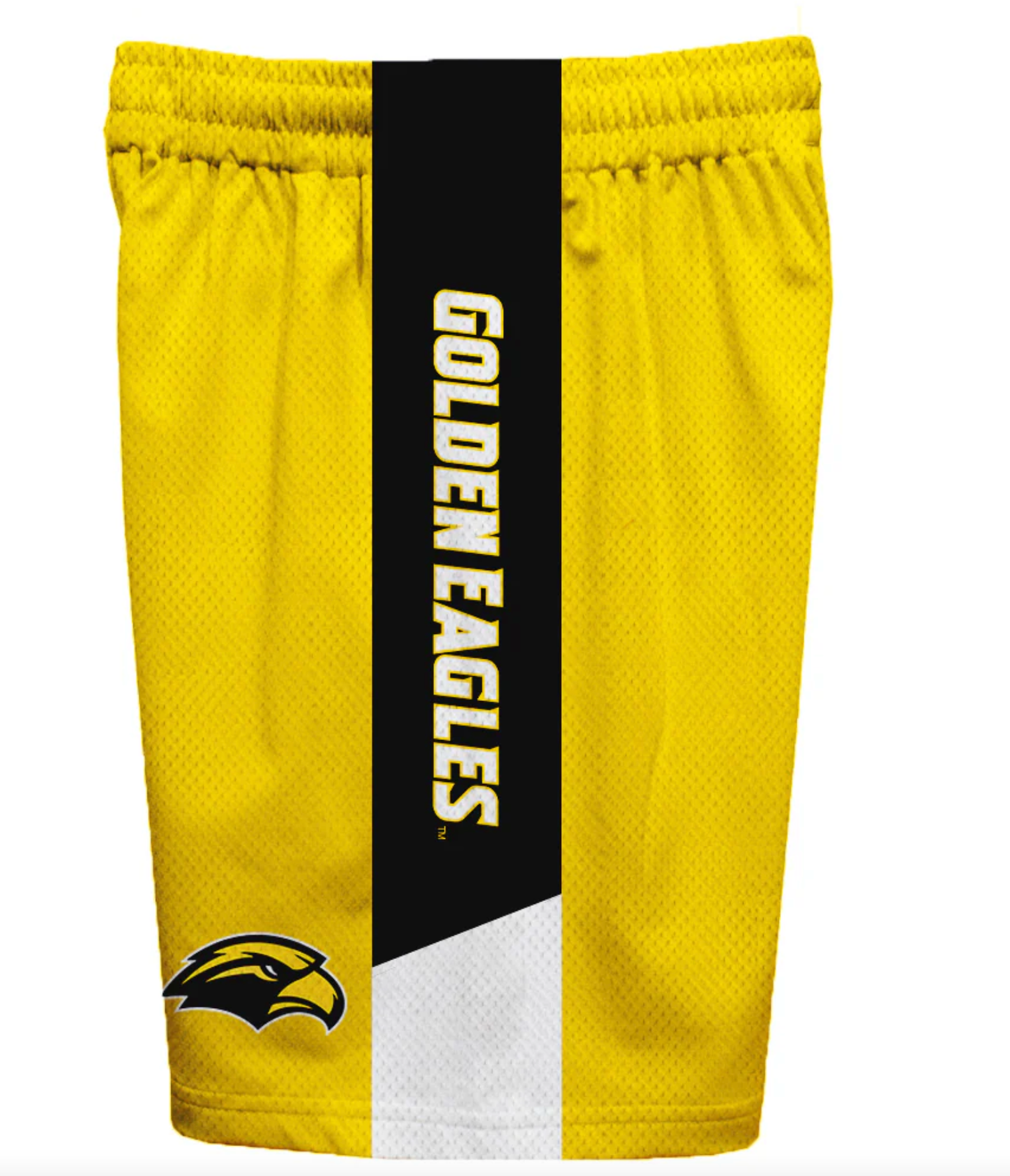 - Let your kiddo look cool and ready in his new team spirit boys athletic shorts with side pockets and panels. Let him play, go to the game, and cheer loudly and proudly with his Southern Mississippi Golden Eagles shorts by Vive La Fete.