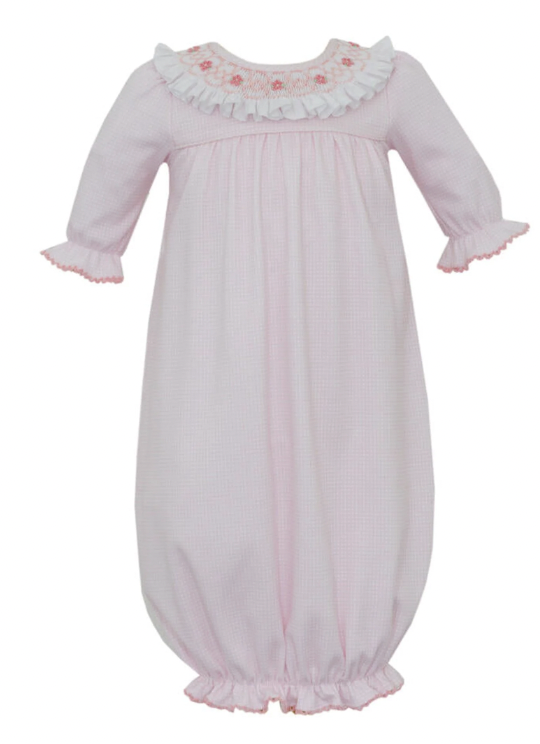 Stephanie Pink Gingham Knit Sac W/ Smocked Collar