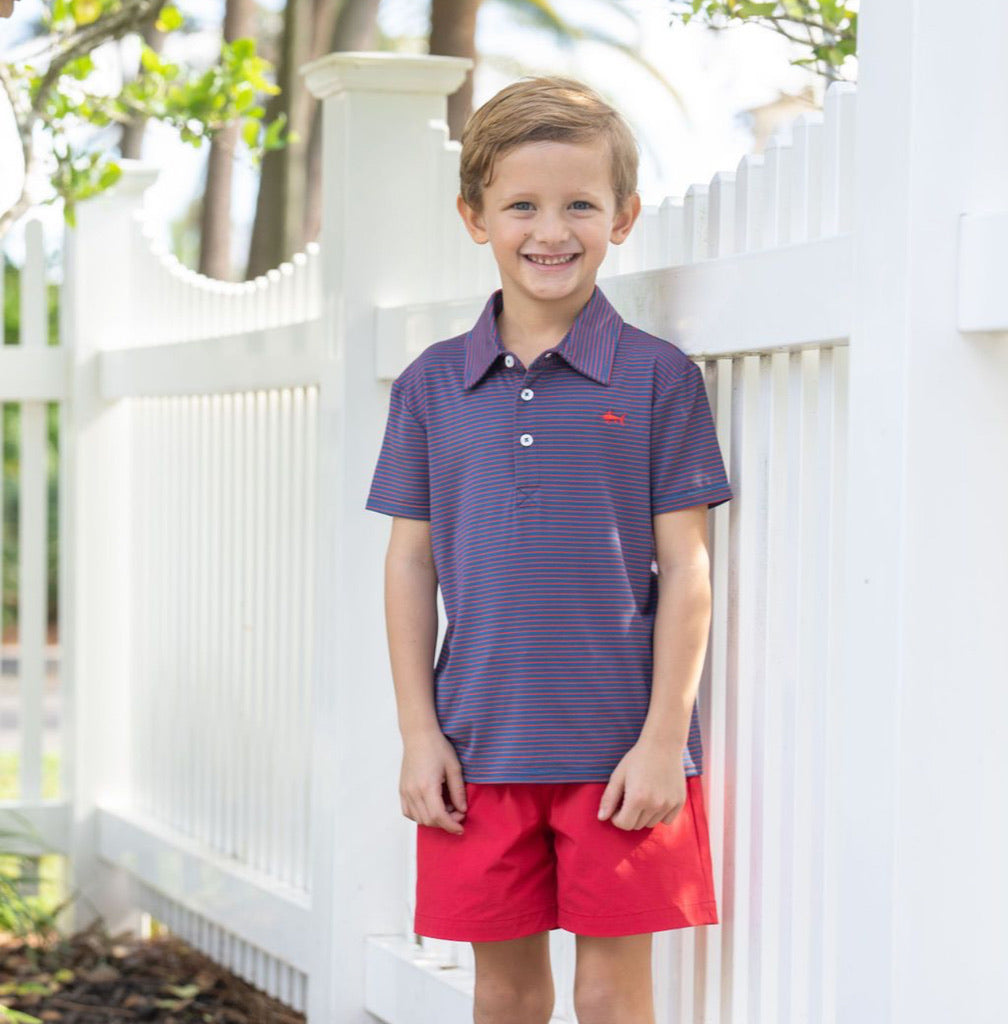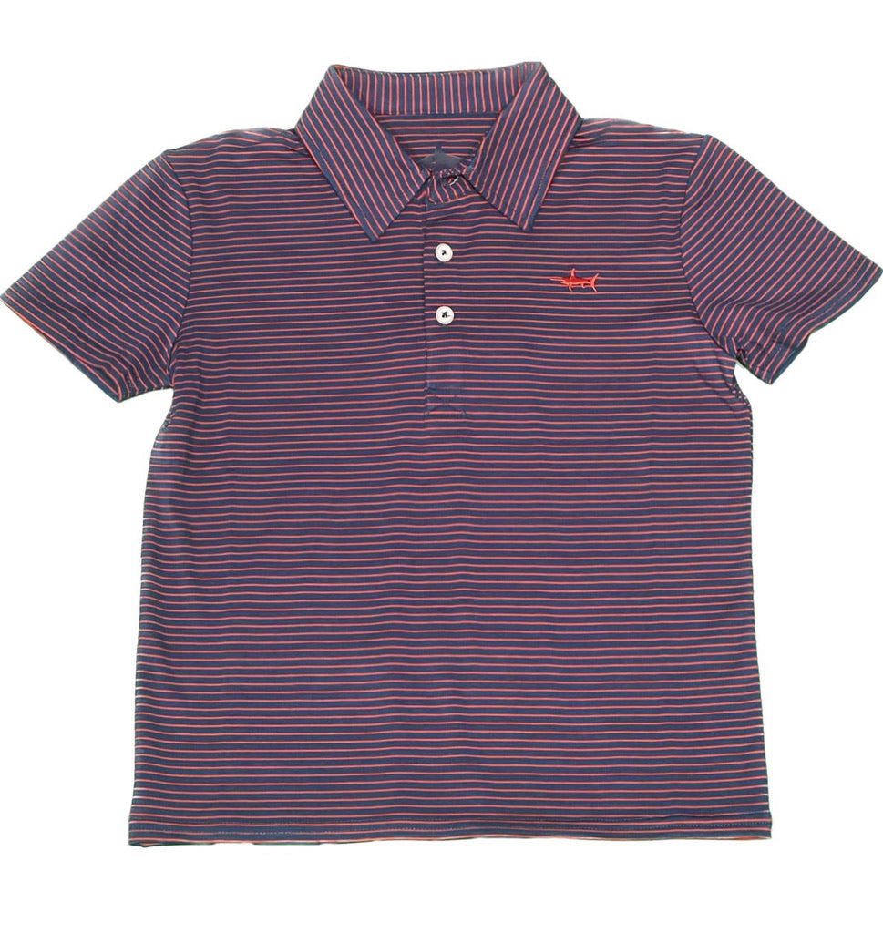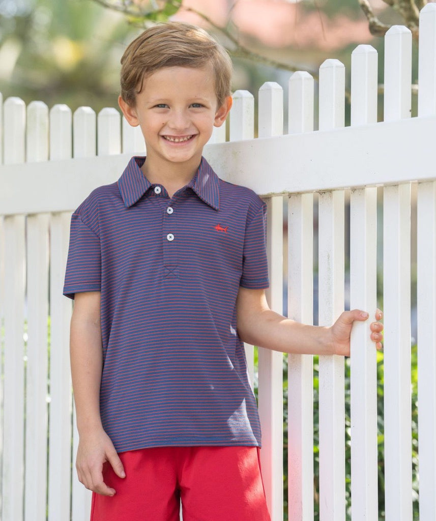 Saltwater Boys Bank Performance Polo Navy/Red Stripe.