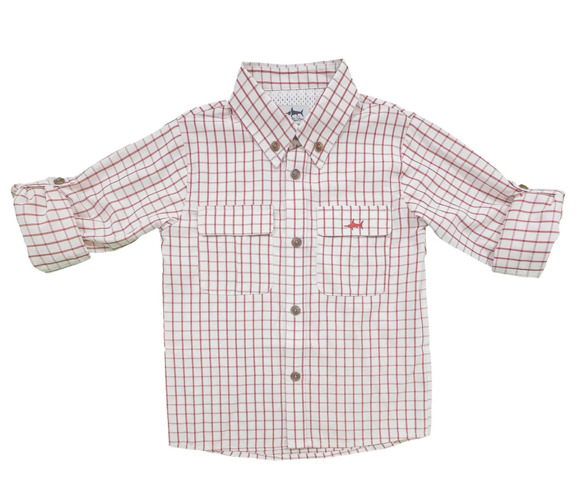 The vented mesh back will keep him cool for each exciting activity. The Flagler Fishing Shirt is just the right amount of cute and functional, perfect for the next time he catches a big one. We love the flexibility to wear the sleeves down for protection from sun or bugs and the ability to button them up too when it gets too hot! It really is the perfect year round' shirt.