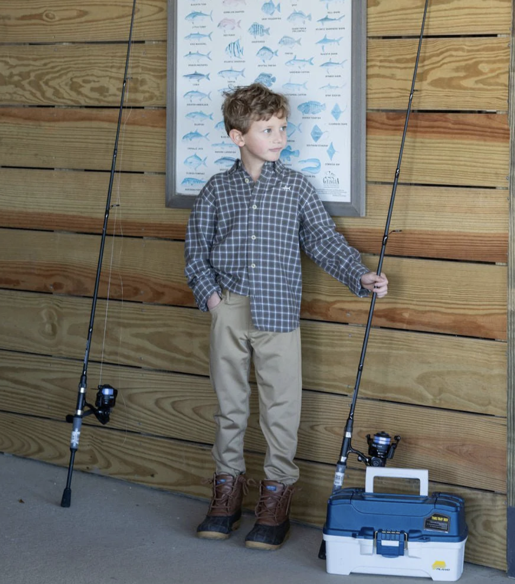 Get your little one ready for fall with the Folly Island Flannel Shirt. This boys plaid shirt keeps them looking sharp and pairs perfectly with our pants.