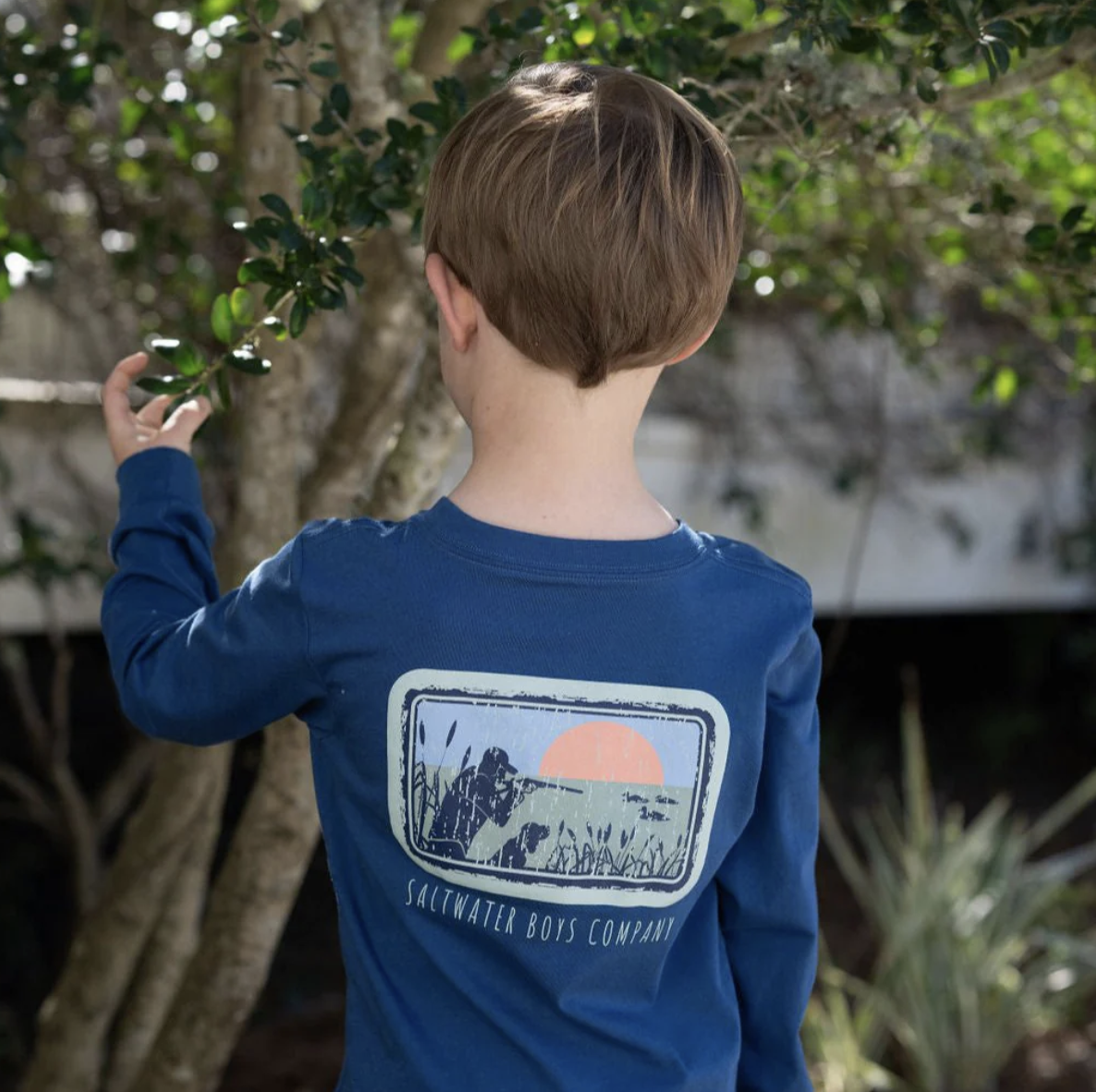 Go on an adventure with boy's best friend in our playful Hunter & Dog Long Sleeve Graphic Tee. Featuring a duck hunting design, this tee is perfect for those who love the great outdoors (and their faithful furry companion).