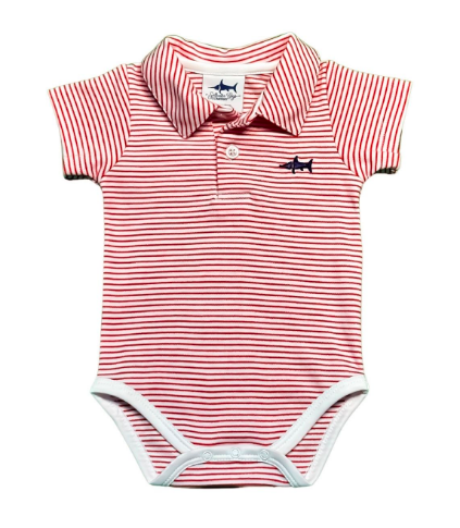 Saltwater Boys Signature Polo Onesie Red Stripe.