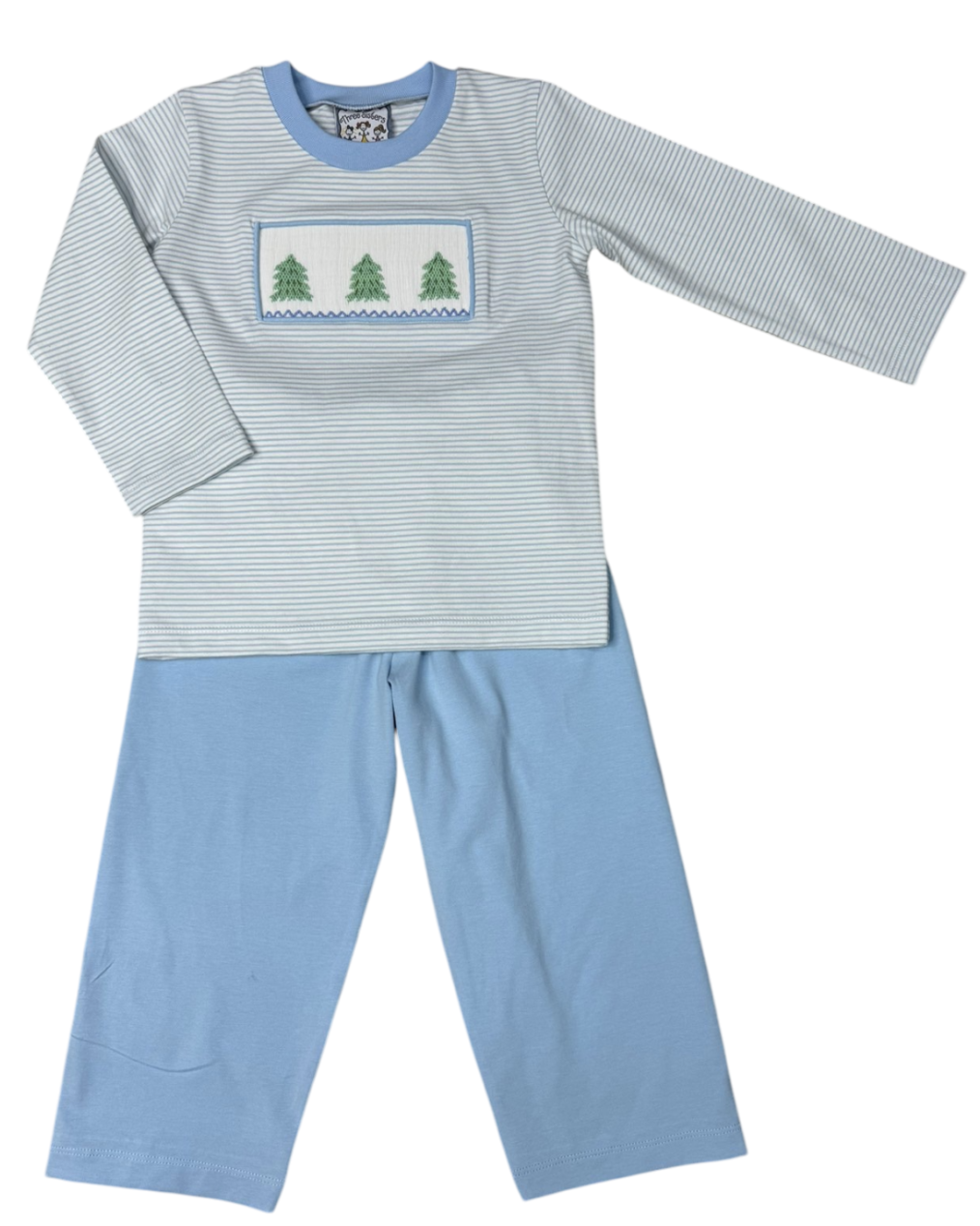 Three Sisters Christmas Tree Smocked Pant Set - Boys