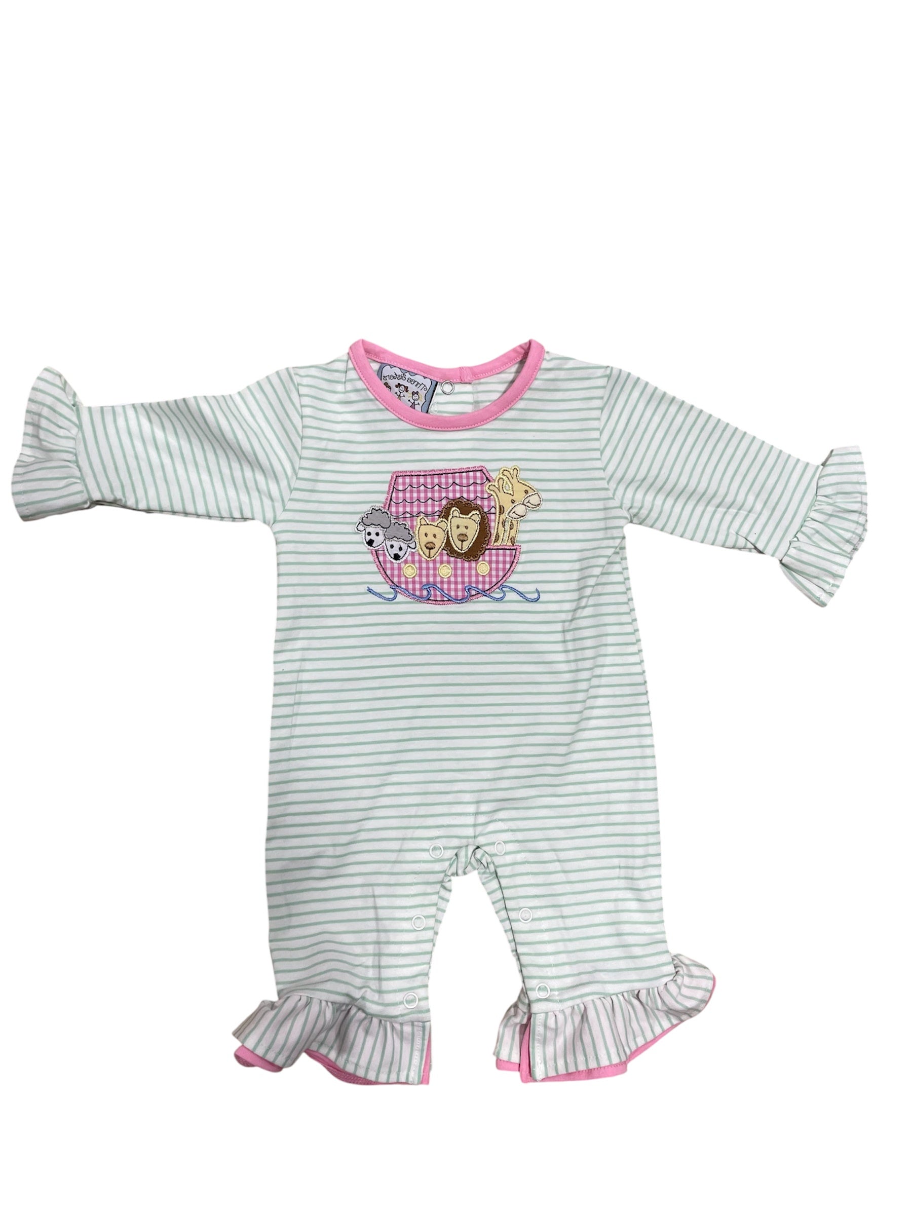 Three Sisters Noah's Ark Girls Greeb Stripe Romper