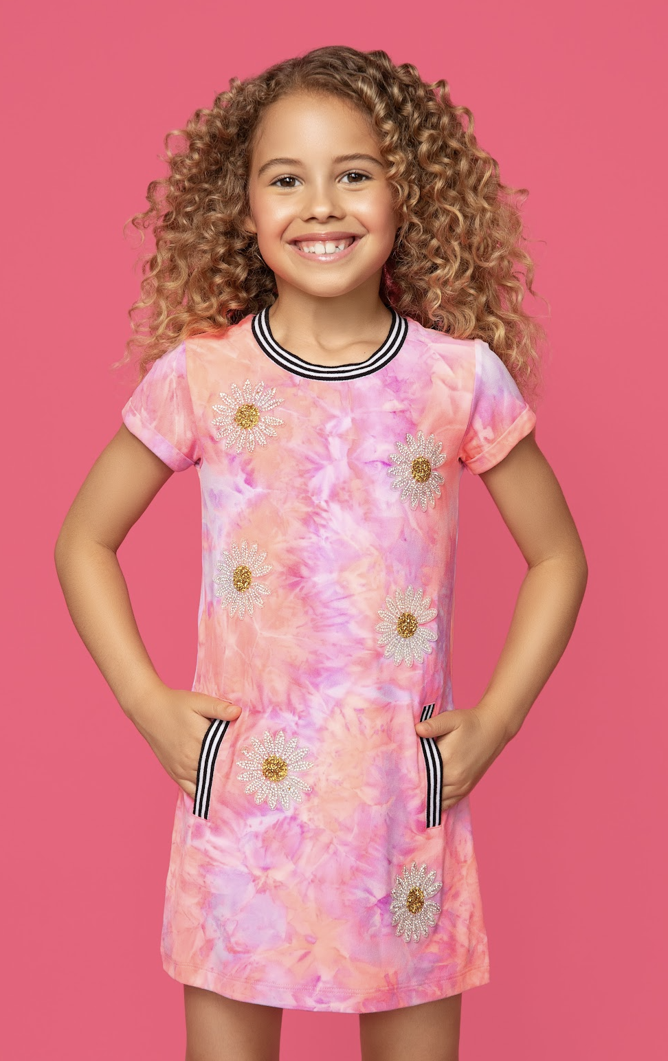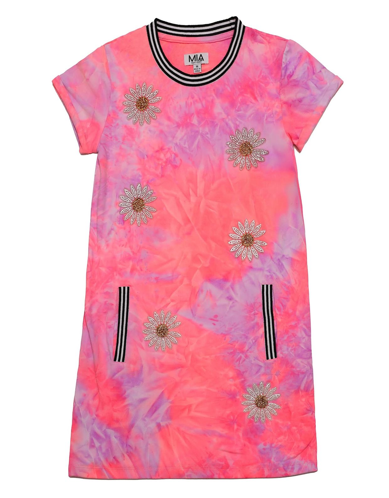 Mia New York Tie Dye Daisy Studded Dress w/Pockets.