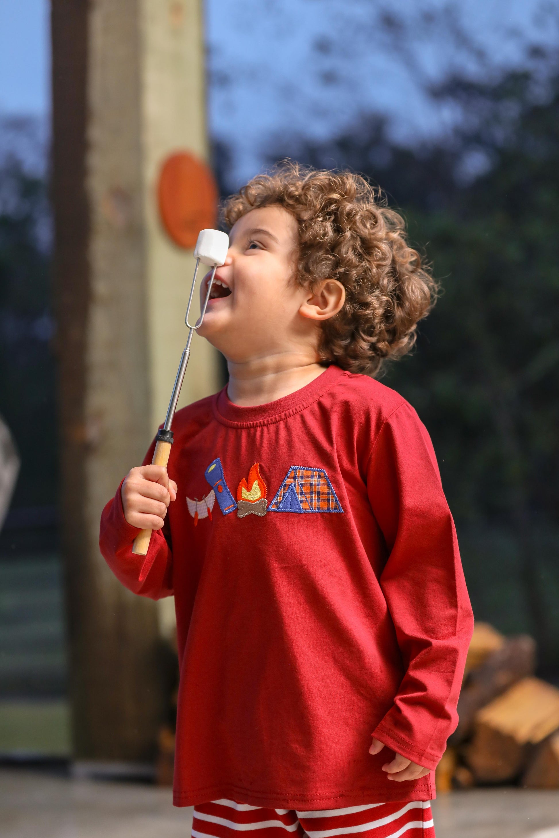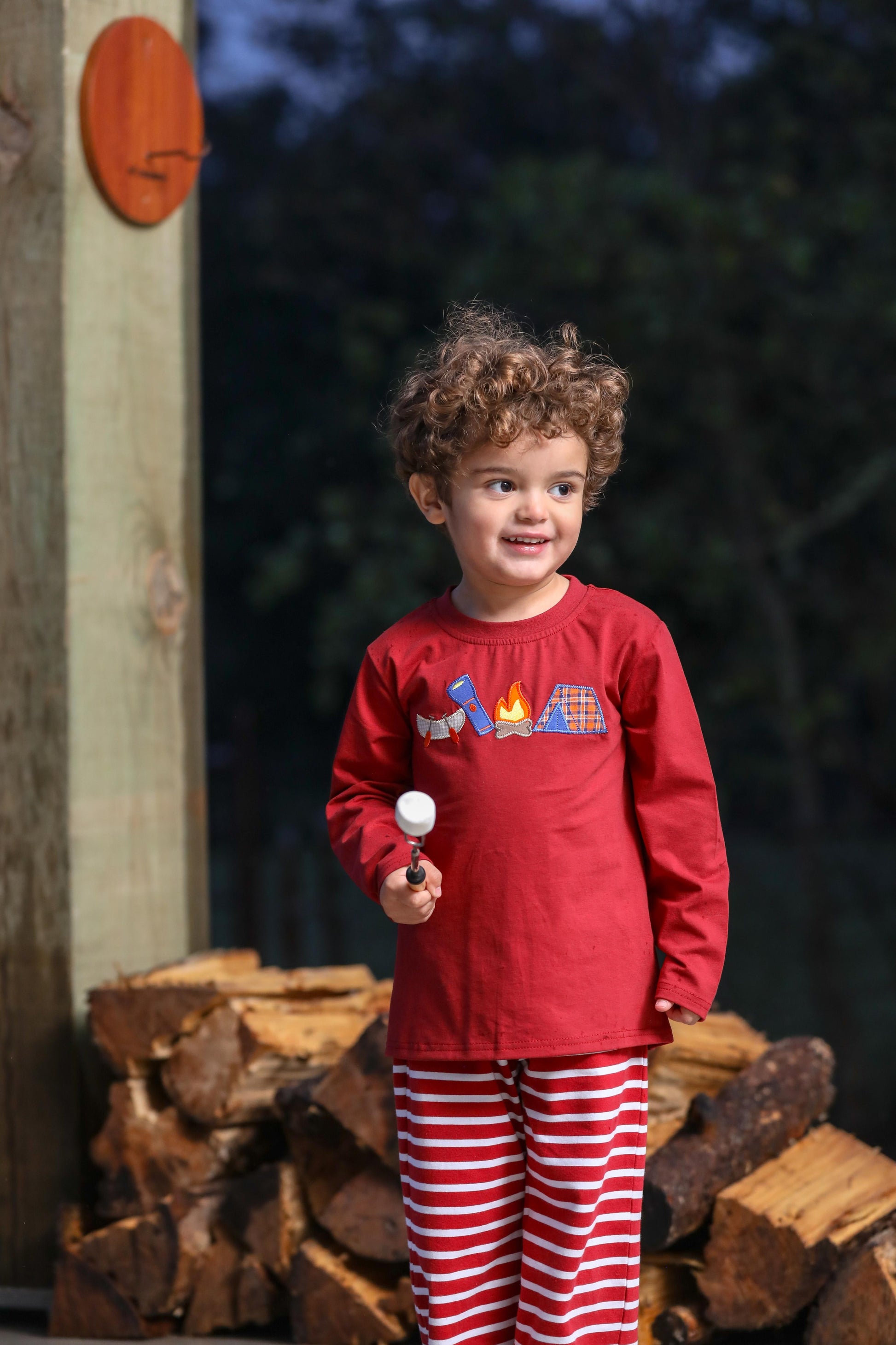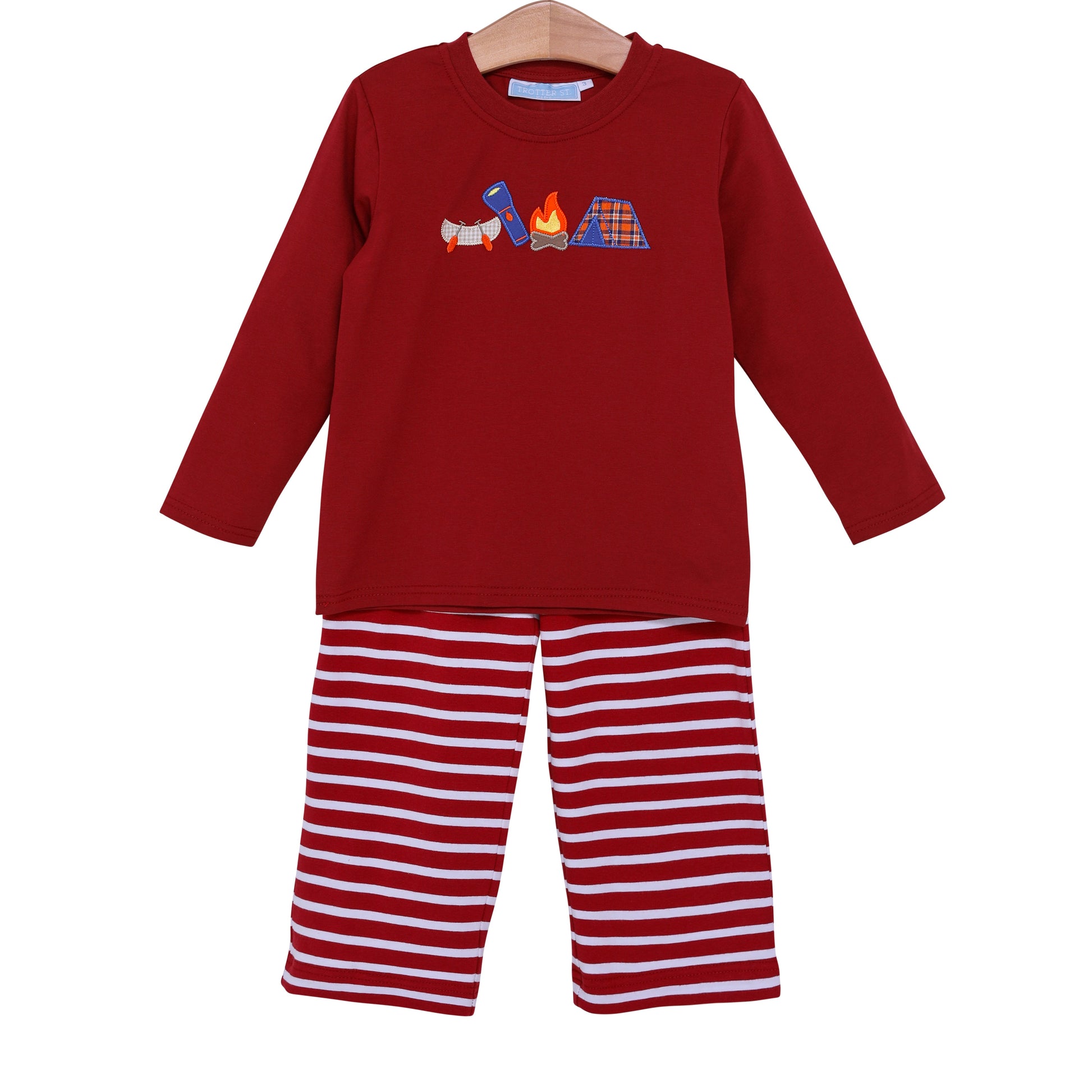 Trotter Street Kids Camping Applique Pants Set.