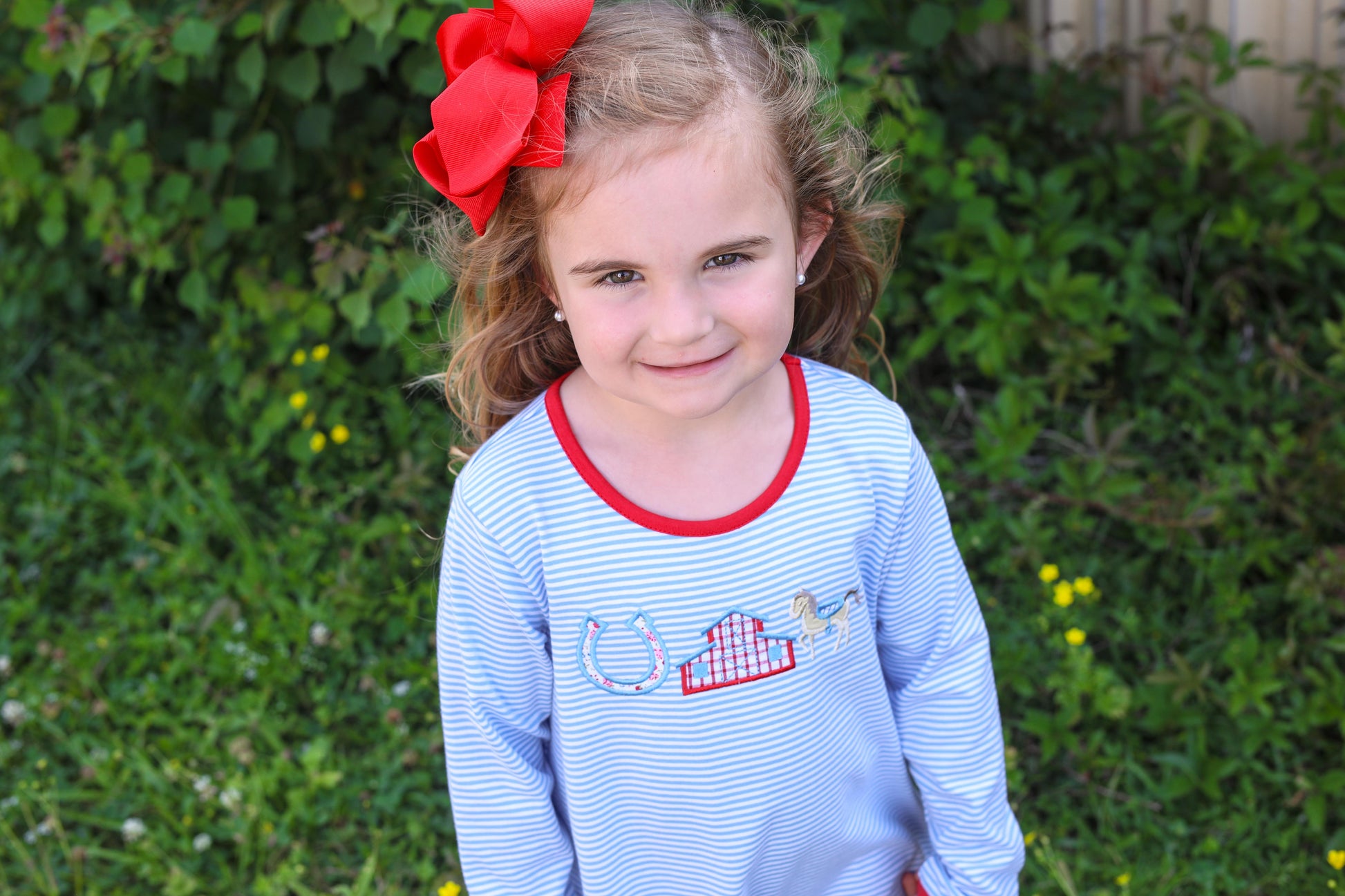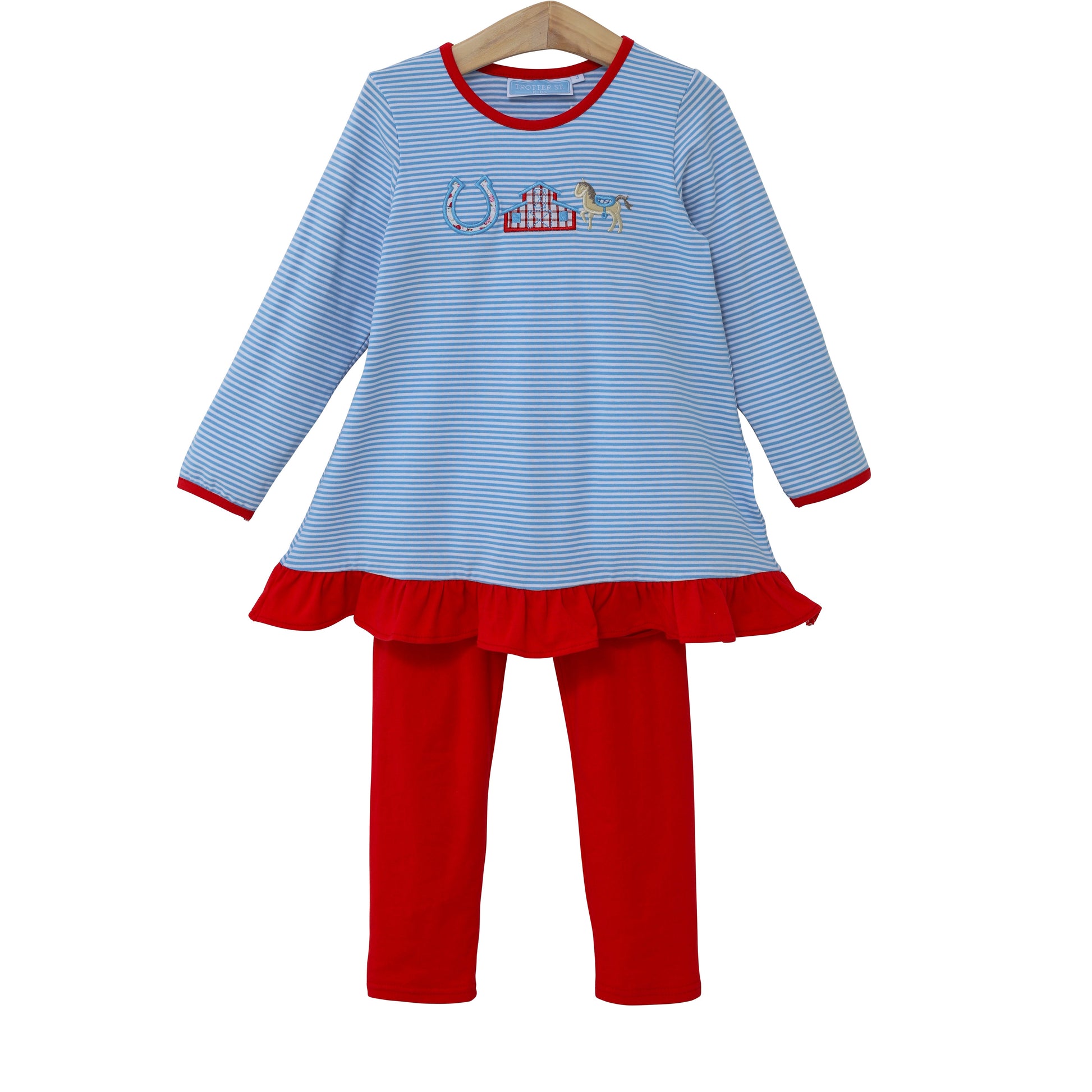 Trotter Street Kids Horse & Stable Applique Ruffle Pants Set.