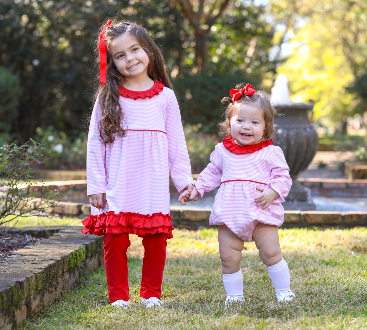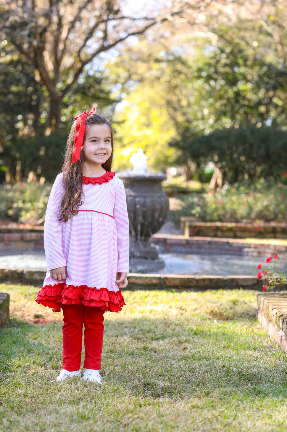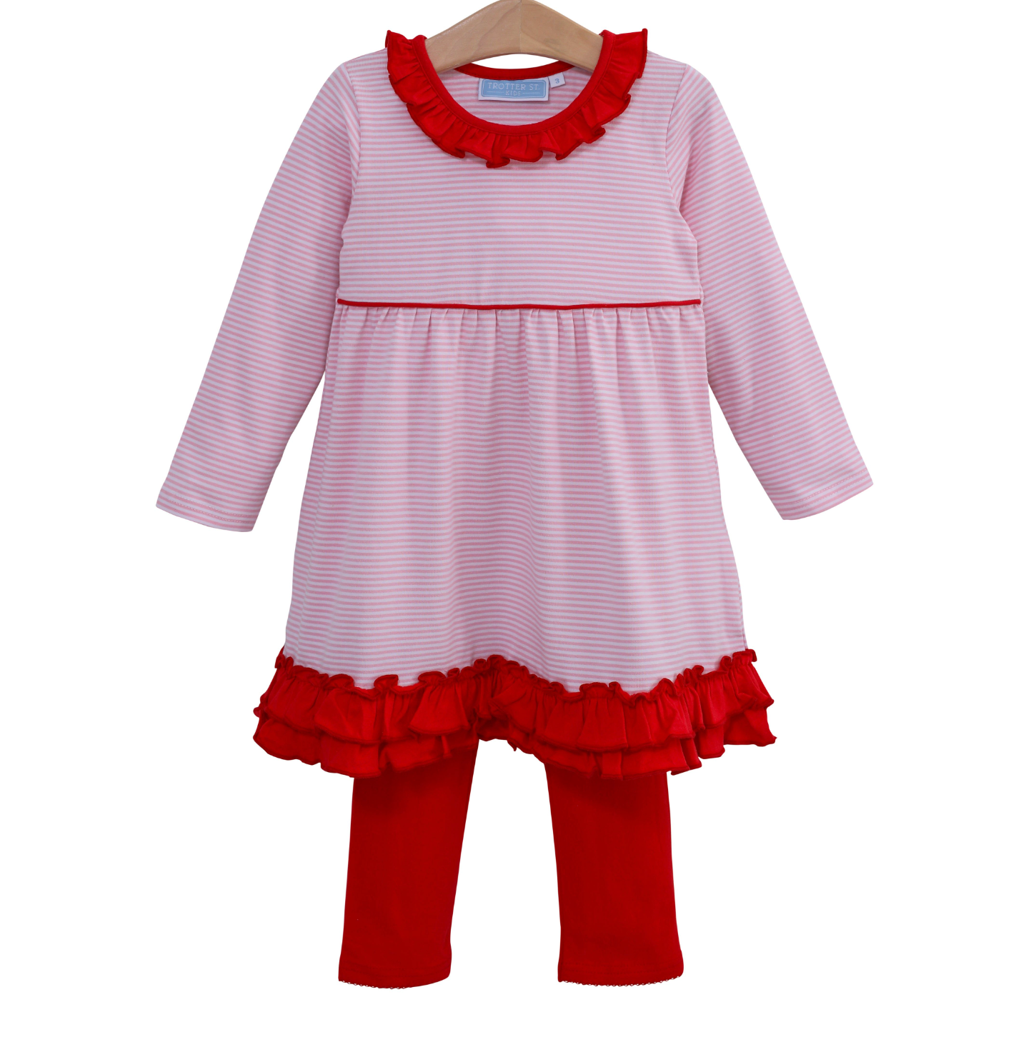 Trotter Street Kids Kate Pants Set Light Pink Stripe/Red.