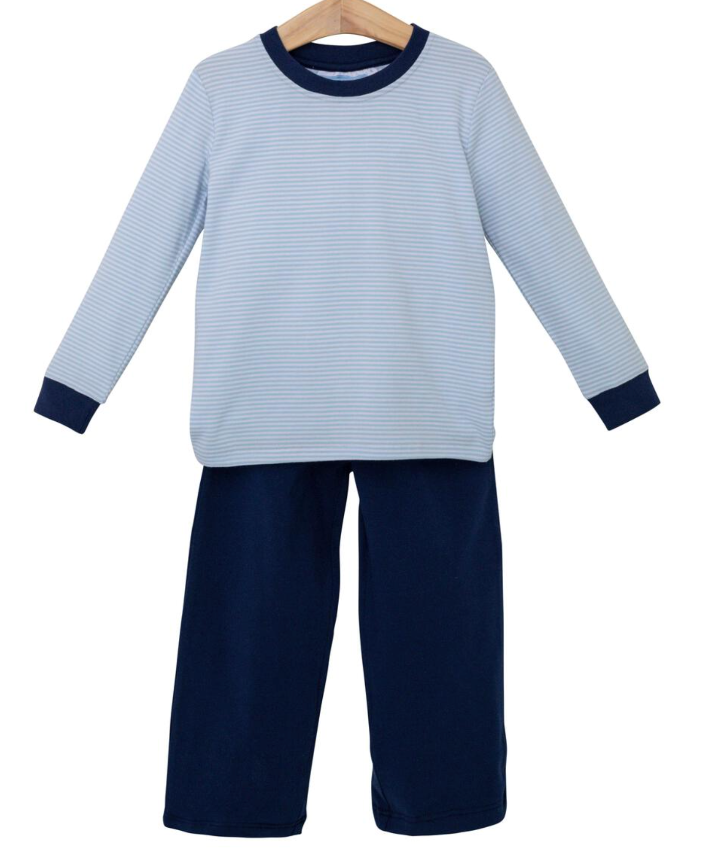 Trotter Street Kids Miller Long Sleeve Pants Set Blue Stripe.