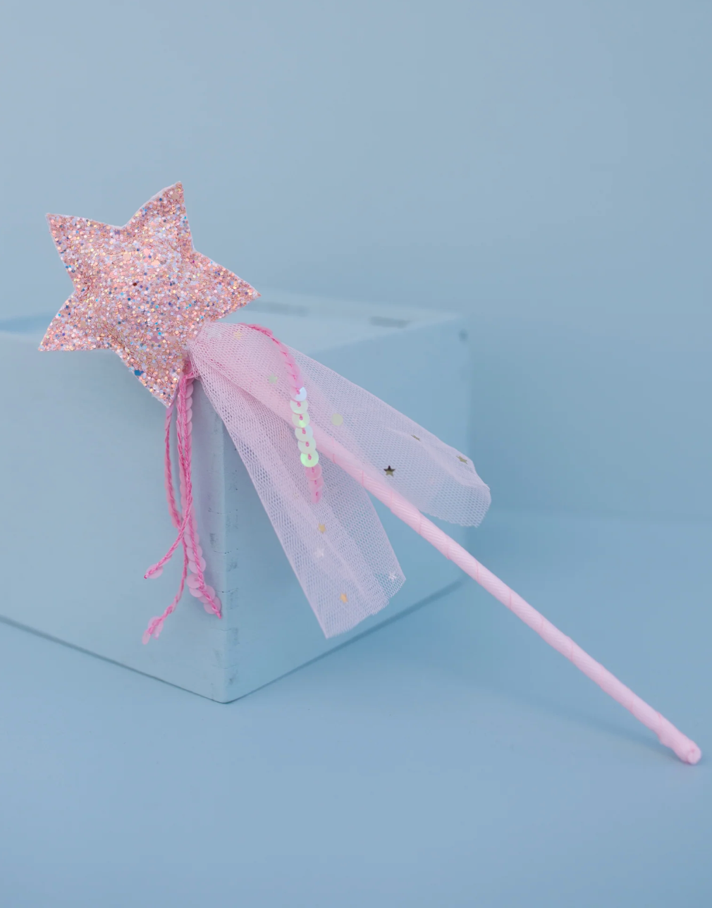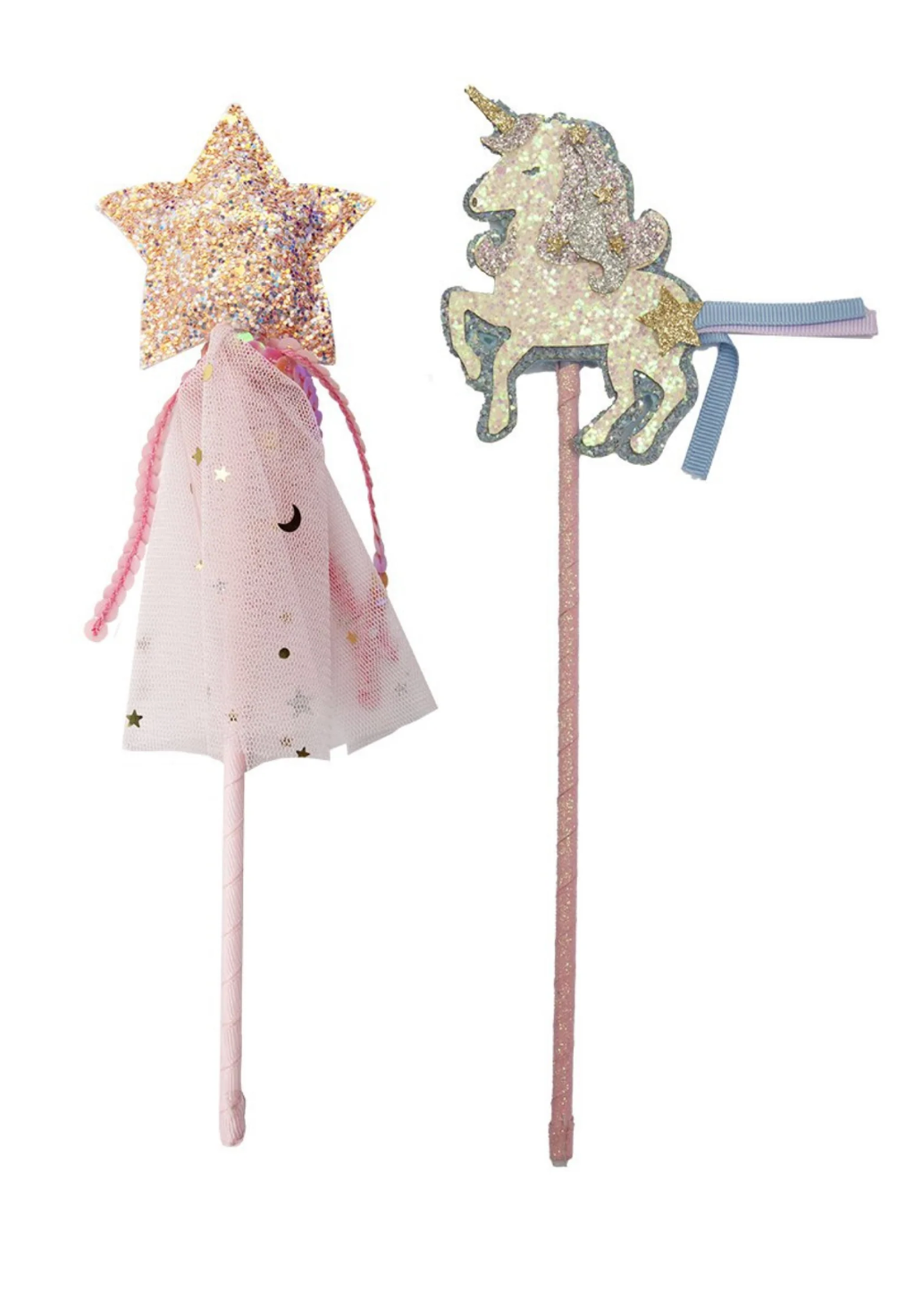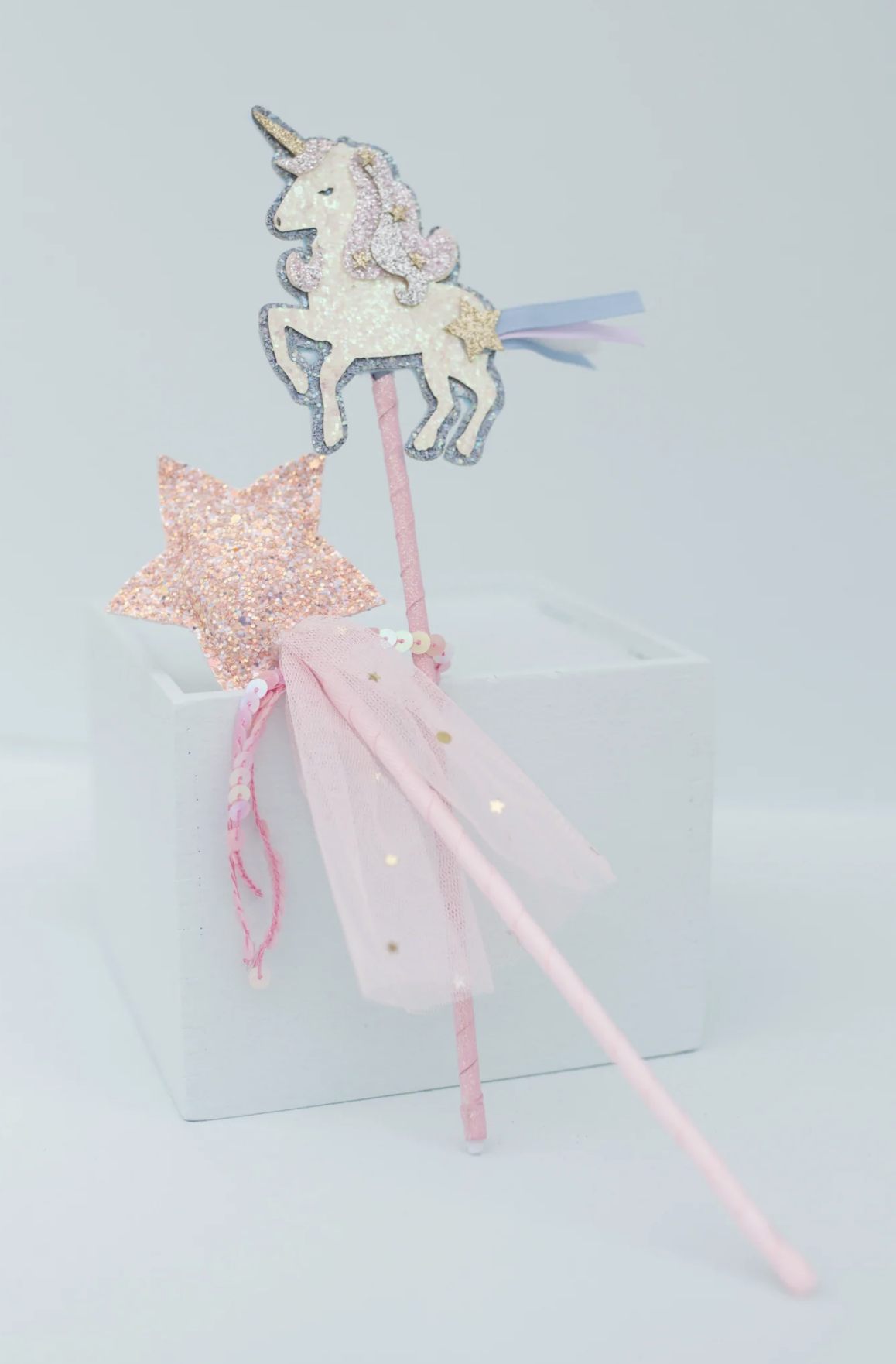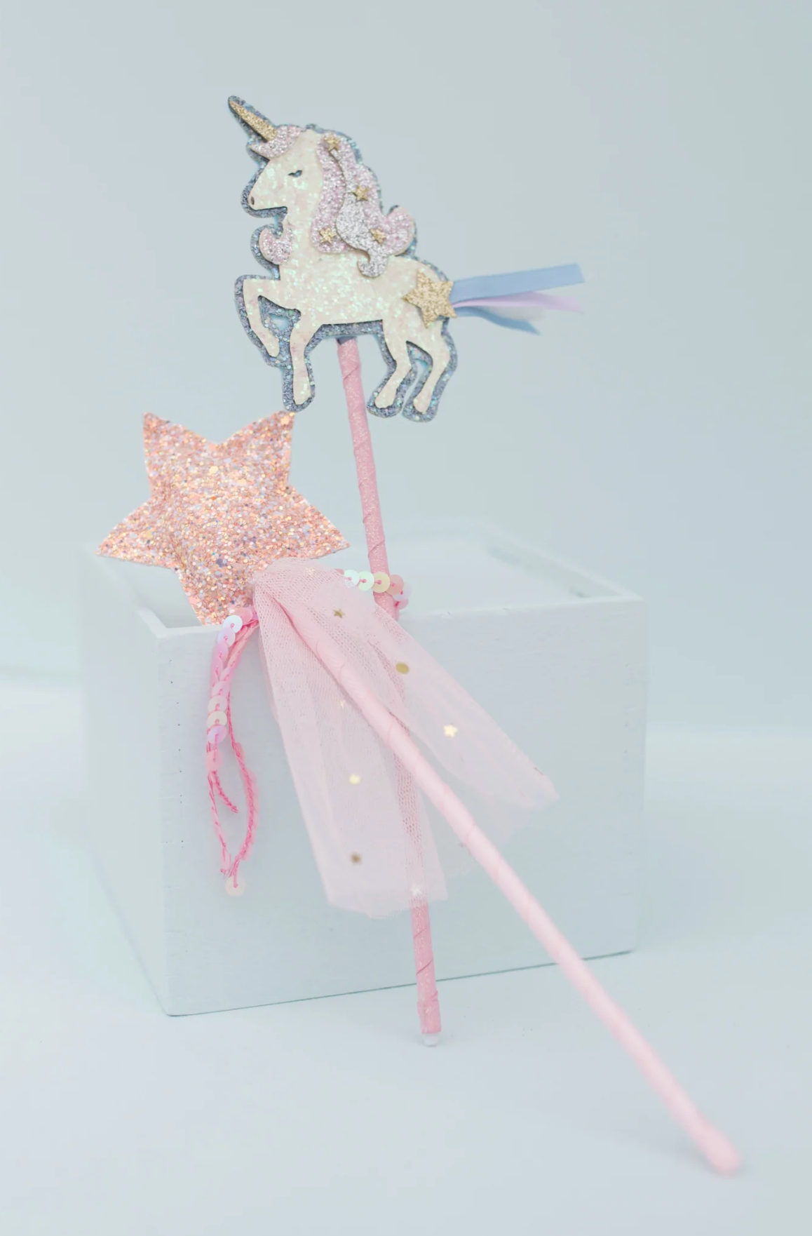 Kids will love this set of two wands, one unicorn, and one shooting star. Both wands are wrapped in a beautiful glittery pink ribbon.